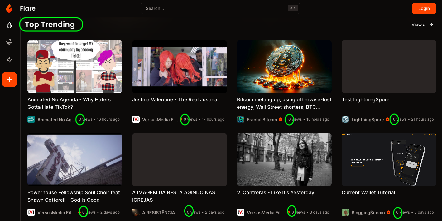 - Watch, like, and make it rain sats to support creators!