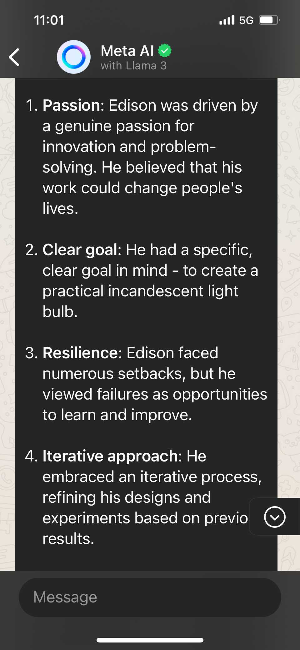 But little is known about how he managed to persevere and stay focused on achieving his goal for so long. I mean, I asked Meta AI, but its answer was so generic that it could be applied to many other inventors and their inventions. Just what V4V enabled Edison to hold on for so long?