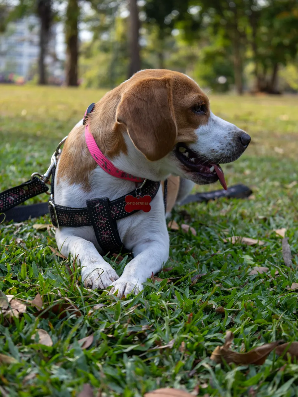 I was walking in the park when I found a lady walking her cute beagle dog so I decided to approach her and ask if I could take some pictures of the dog and she said yes.