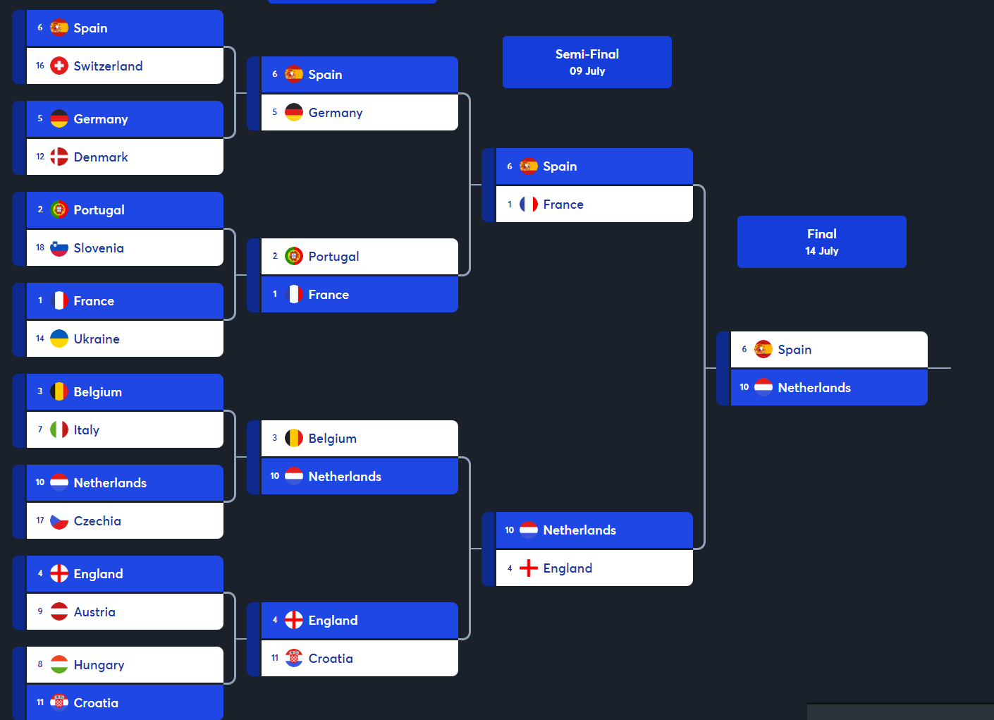 I'm really liking the way Spain is playing right now with good team chemistry. They have started the tournament strong so we'll see what happens!