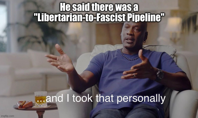 This is the problem with labels as you said in your OP. We all have ideas in our heads about what a label is or isn't. This reads as a refutation to me. If he uses the libertarian label that's fine. I'm not the arbitrator of that. It just doesn't align with what I think a libertarian is. I don't align with what I think a libertarian is but I think I am much closer than this guy.
