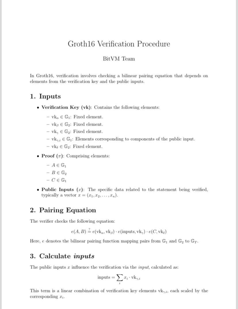 Groth16 Verification Procedure - Used in BitvM2