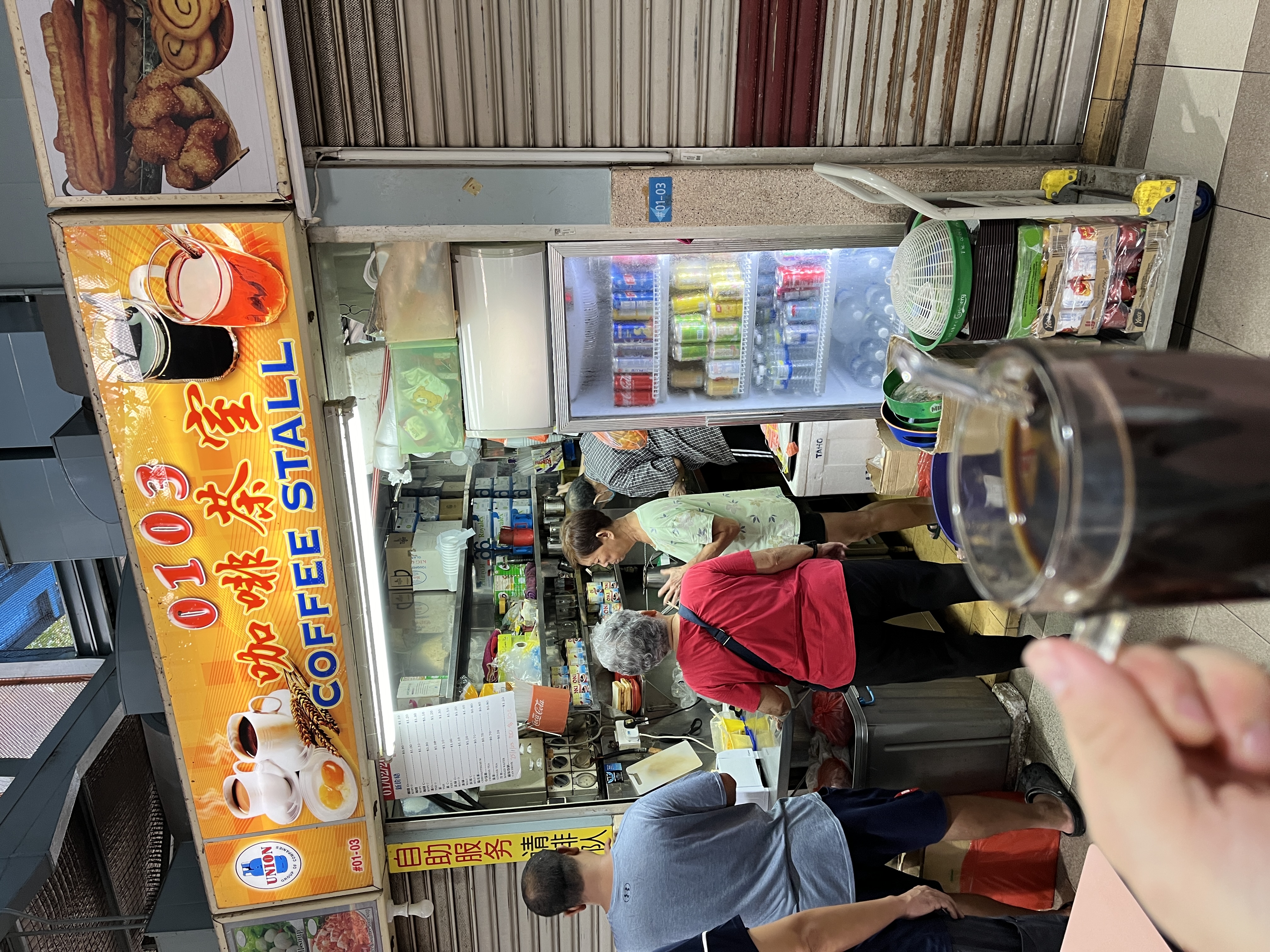 今天,我在Blk 91 Whampoa Market 吃早餐,从0103咖啡茶室买一杯Kopi kosong。顾客很多,所以老夫妇忙得不可开交。老板娘跟顾客很熟,直接叫他们的名字,有时还亲自端上咖啡。老板娘抱歉地告诉我说得等一等,我说那我先去吃carrot cake。老板娘说没问题,接着也帮我送咖啡。咖啡只算90毛钱。天啊❗️在这物价暴涨的年代还坚持卖这么便宜!我给老板娘一块,说不用找钱了啊。老板娘不肯,说这是老板坚持这样卖。