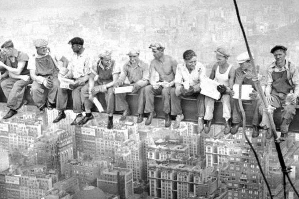 During construction, the skeleton was a vertical structure made up of 210 steel columns, which could only be raised 30 stories at a time. Crowds gathered to watch as unsafe workers moved freely around the cranes and beams. Five workers died during the building's construction, attributed to the lack of safety precautions.