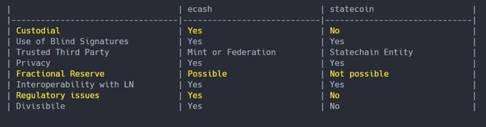 Ecash vs Statecoin