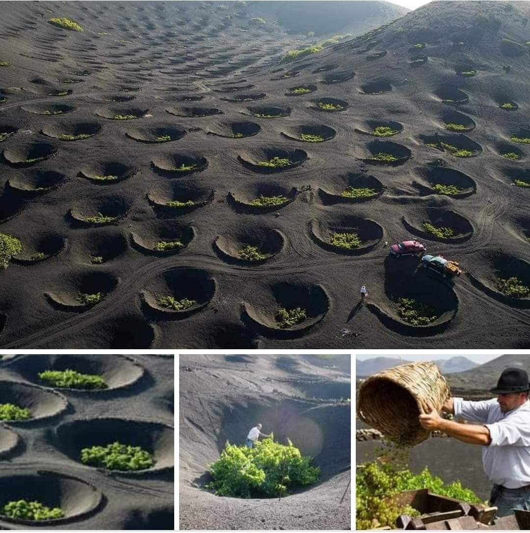 near the northern coast of Africa and the Sahara Desert, lies Lanzarote. Formed by volcanic eruptions 15 million years ago, this island is covered in solidified lava flows, volcanic rocks and black sand. It receives minimal rainfall, about 16 days a year, and temperatures on its black plains can reach 50°C (120°F). Despite these harsh conditions, Lanzarote produces between 400,000 and 600,000 bottles of wine annually. The island’s winemakers, considered some of the hardest-working in the world, developed innovative wine-growing techniques in the 18th century. The last eruption of the Timanfaya volcano in 1730, which lasted six years, forced many residents to emigrate. However, those who stayed discovered that the volcanic soil, known as picón, was excellent at retaining moisture, making it possible to grow crops. Lanzarote is unique for its dry farming method using volcanic soil, a testament to the resilience and ingenuity of its farmers.