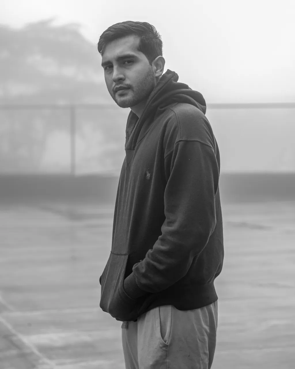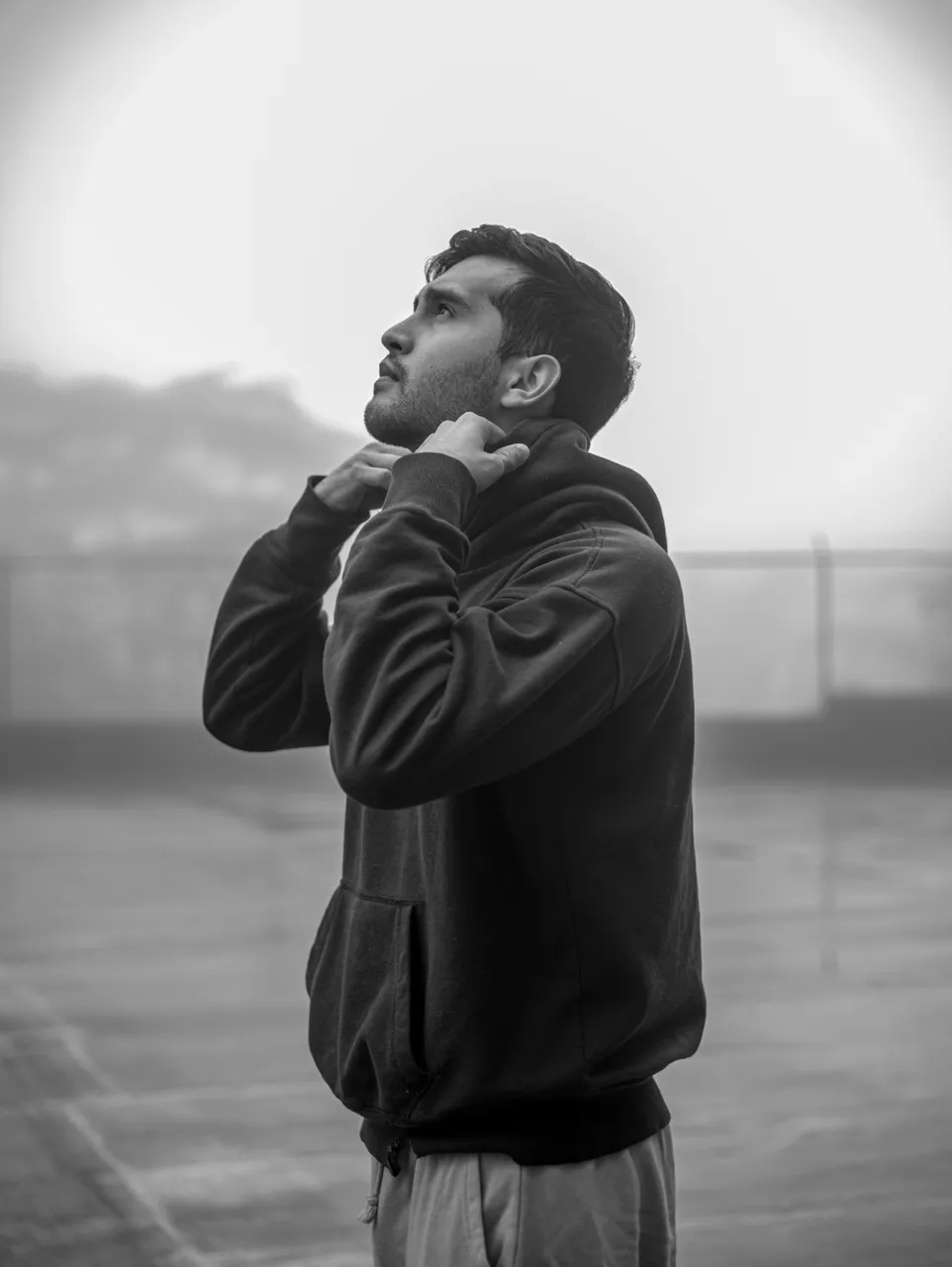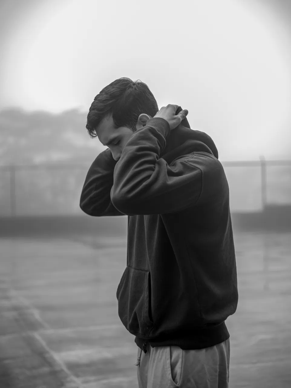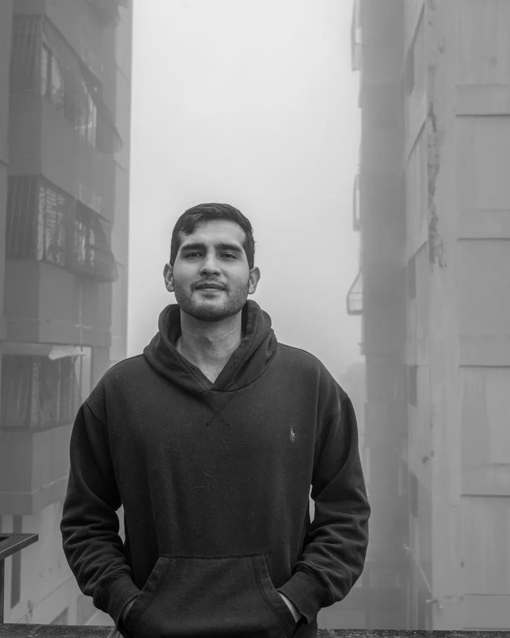 Yesterday I had the wonderful surprise of seeing the fog literally descend to the level of my window and when I looked out everything was filled with a thick fog so I grabbed my camera and tripod and went down to the common area of my building to take a series of self-portraits.