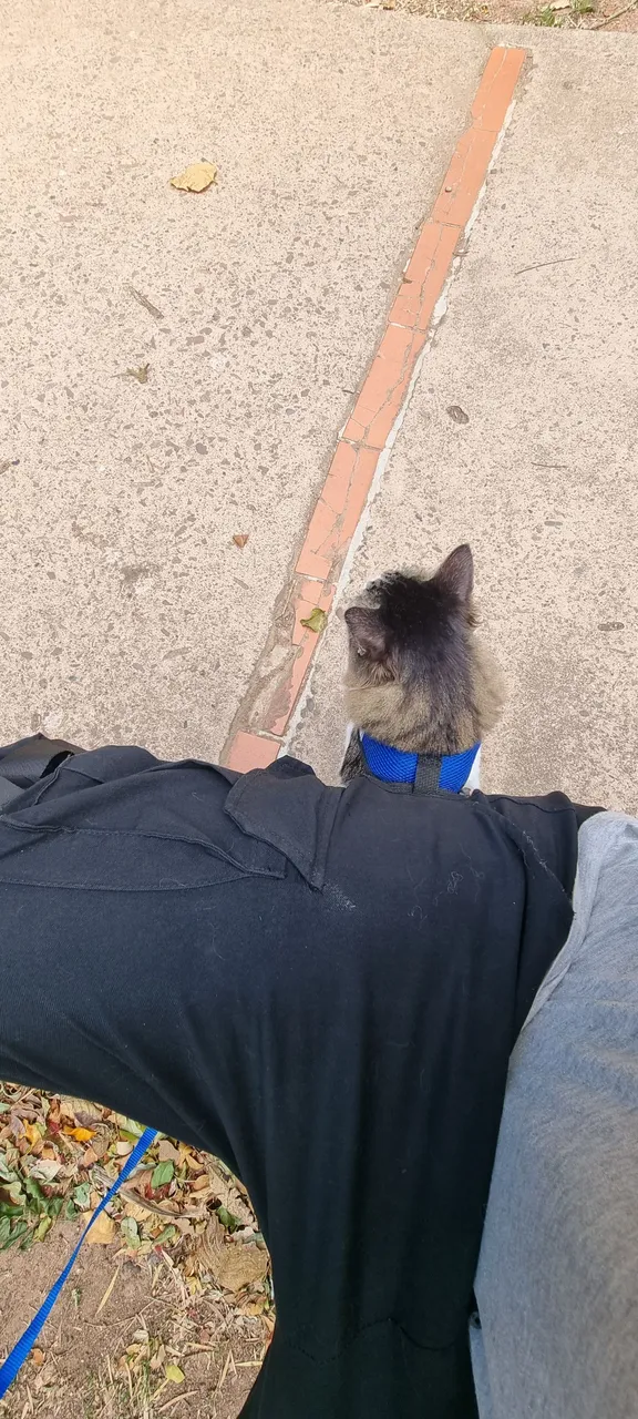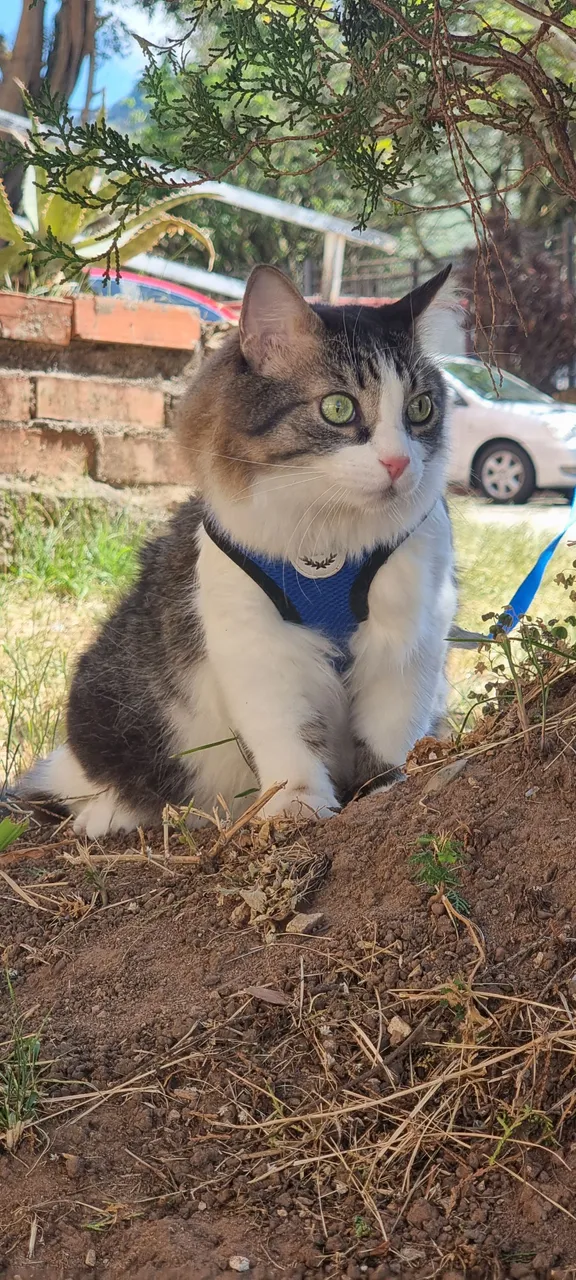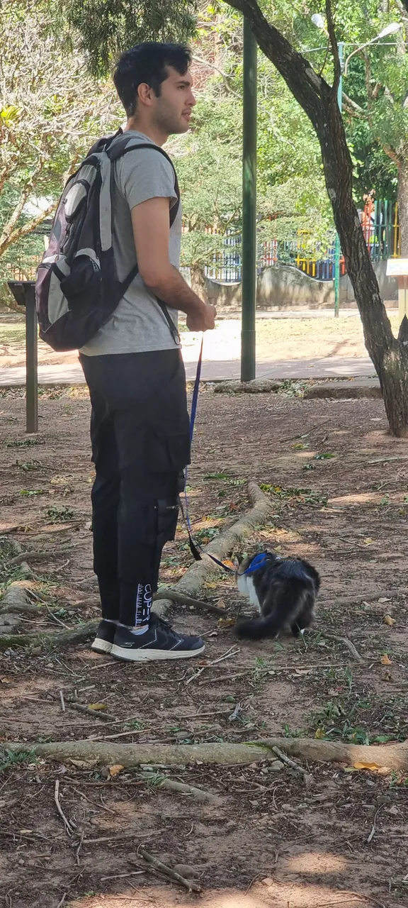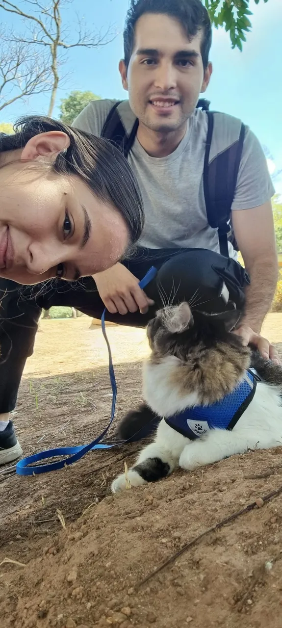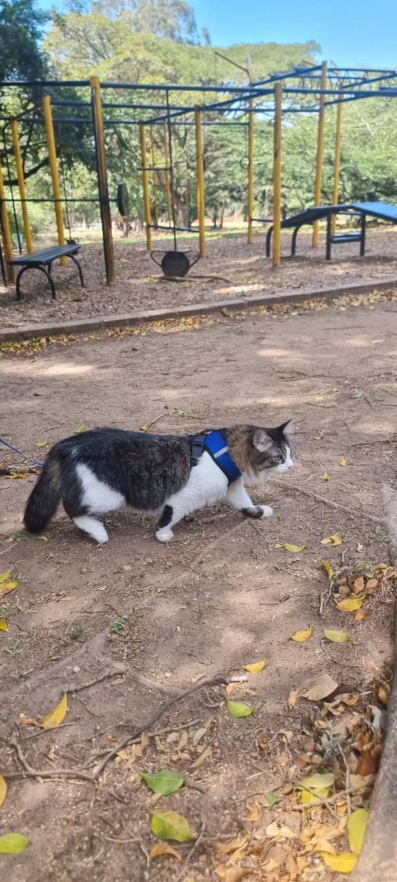 Today, Colita loves going for walks. Every night at the same time (10 pm), he starts meowing at the door so we can take him out for a walk, and he goes very happily!