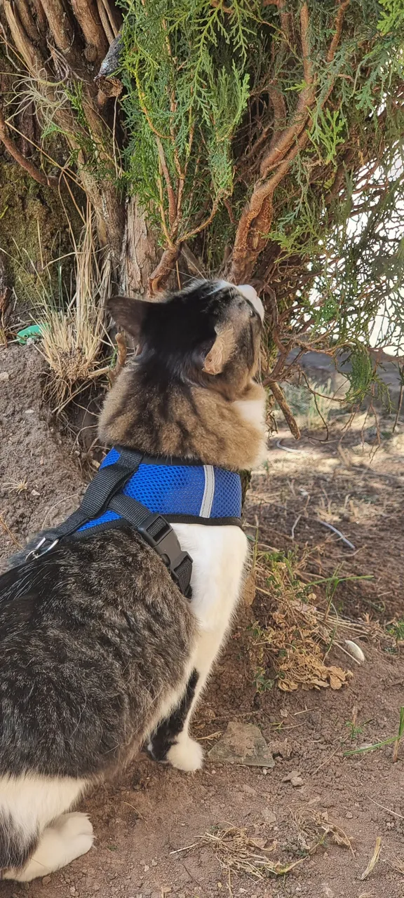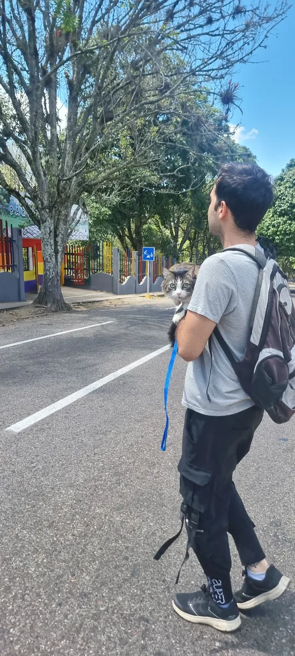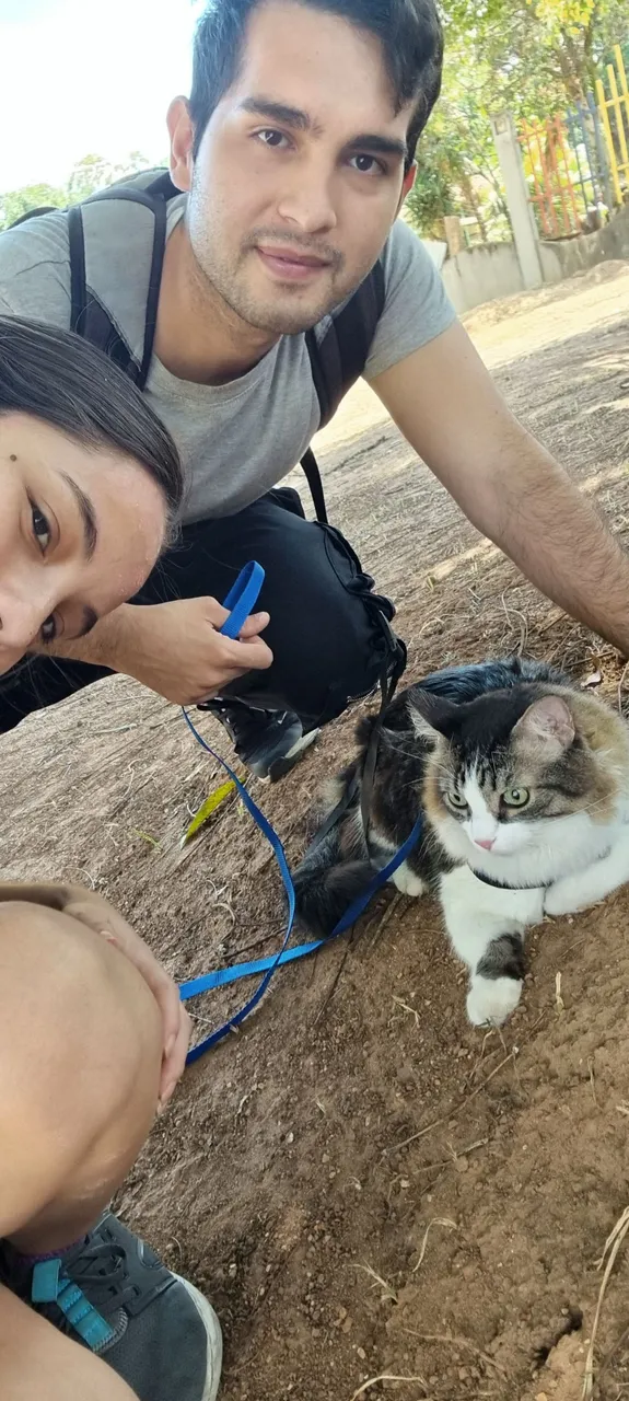 First, we took my cat Colita to the place where we always take him, to his favorite tree, so that he could relax in a familiar environment, since it was daytime there were many people and cars and he was a little nervous...