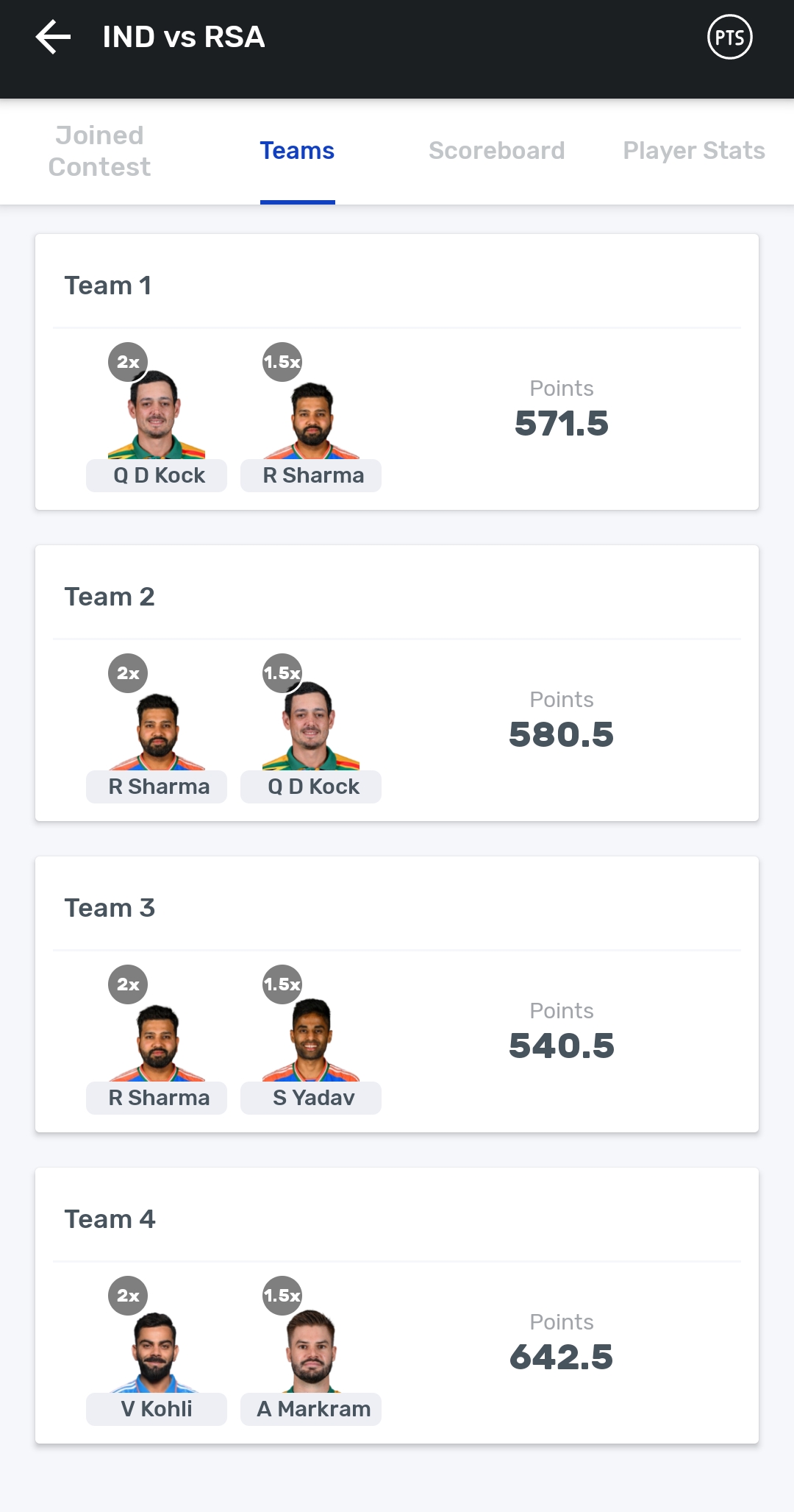 There is a team name for everyone on the screenshot I provided you. Based on team name the results are here. Team 4:by @IamSINGLE have won today. Congratulations!