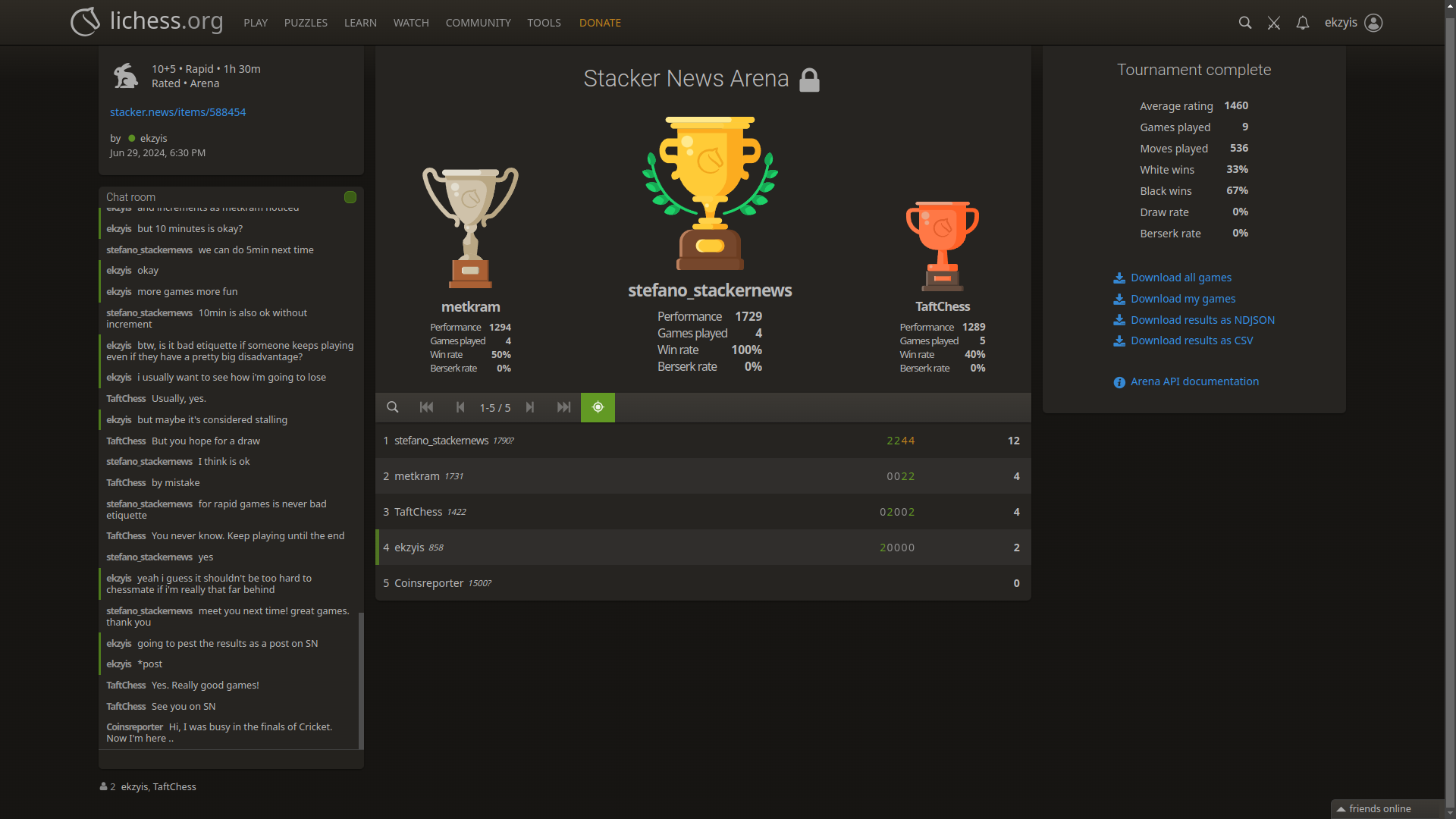 Stacker News Chess Tournament ResultsStacker News Chess Tournament Results