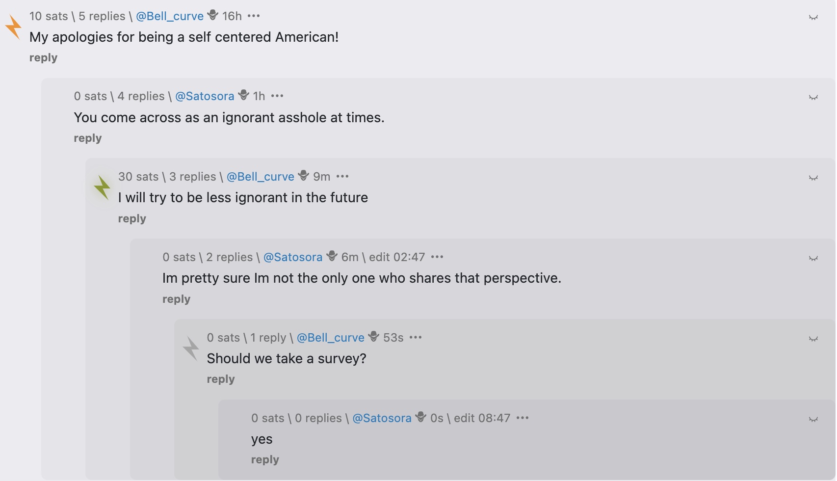 hmm..@Bell_curve sometimes comes off a bit rough off the edges. I do think the poll/survey is a bit extreme, and everyone has the right to not self incriminate. You could do the following: (1) not respond; (2) Mute on SN; (3) Not take it personally; (4) downzap the user. In your case, just mute. Move on, life is too short to be angry. You can effectively make fun of him/her too, get a laugh for both of your sakes and move on. The choice is up to you.