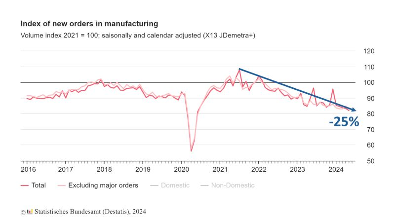 - Continuous Decline: May marked the fifth consecutive month of order decreases for the industry, with a 1.6% drop from the previous month, according to the Federal Statistical Office.