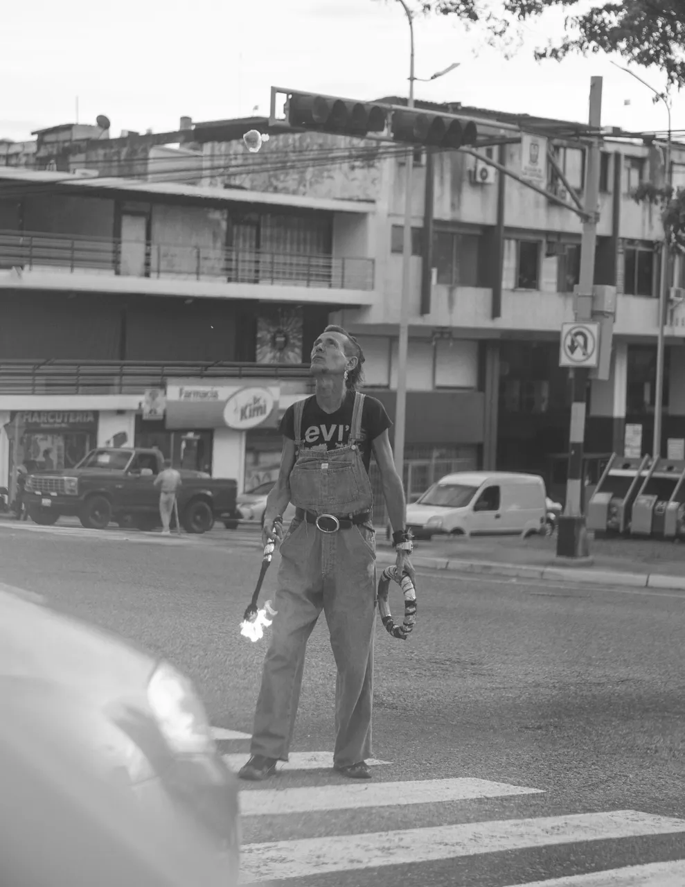 At the traffic lights in this city it is very common to find this type of people who do juggling or any type of trick to try to impress the people in the cars and thus earn some coins to survive...