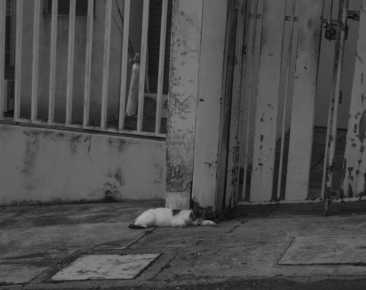 A sleeping stray cat: