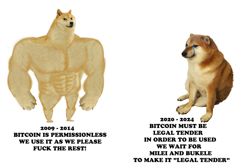 The whole point of Bitcoin is: PERMISSIONLESS. Being a "legal tender" is like somebody is giving you permission to use it LOL, this is a fucking nonsense.