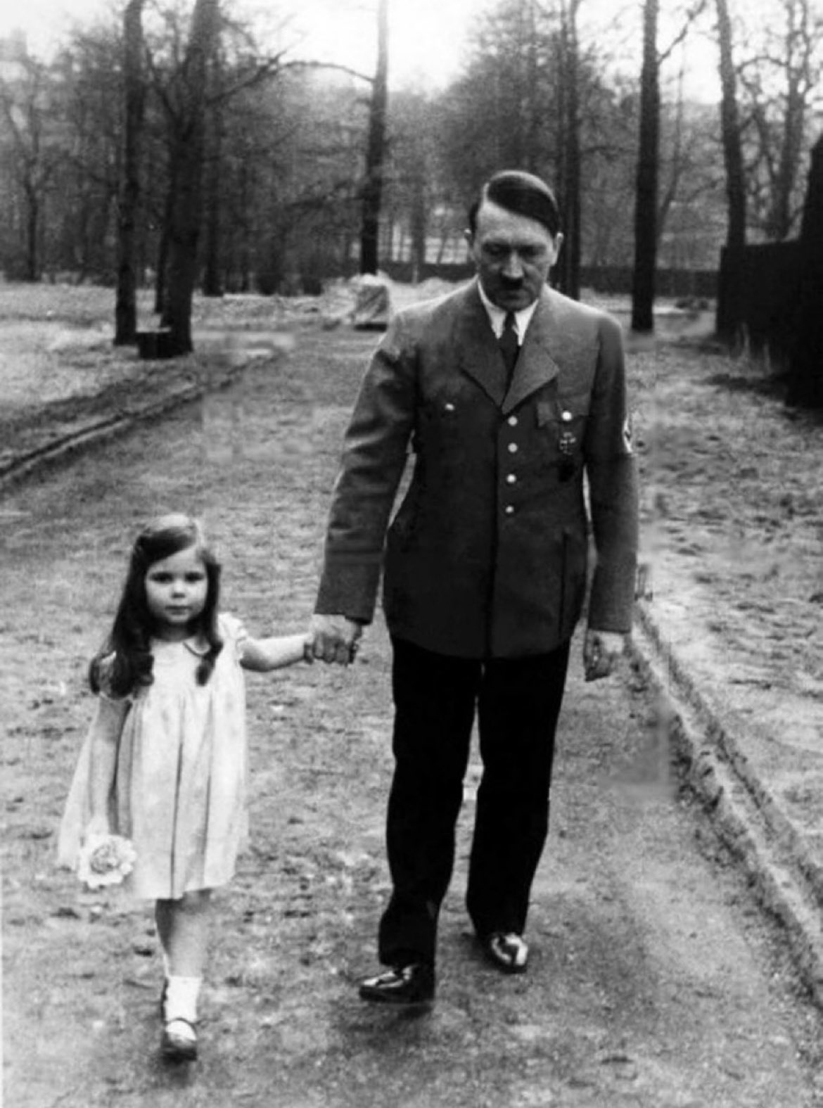 - Adolf Hitler on a walk with Helga Goebbels. Helga and her siblings were later given cyanide by her parents in Hitler's bunker in 1945.