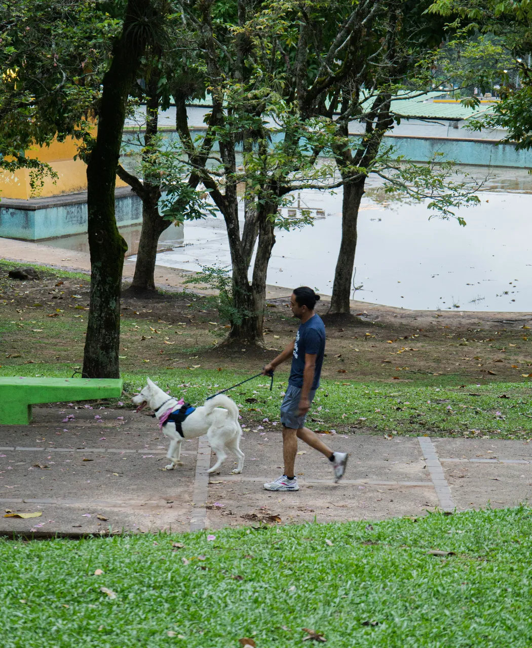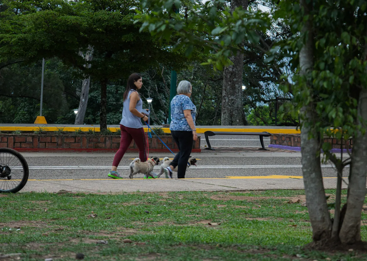 The most common things to see in the park are people walking, walking their dogs, or exercising: