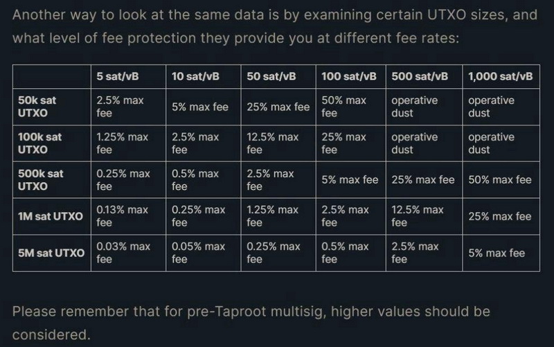 He suggests minimum UTXO size for single sig of 1M sats and 2M sats for multi sig.