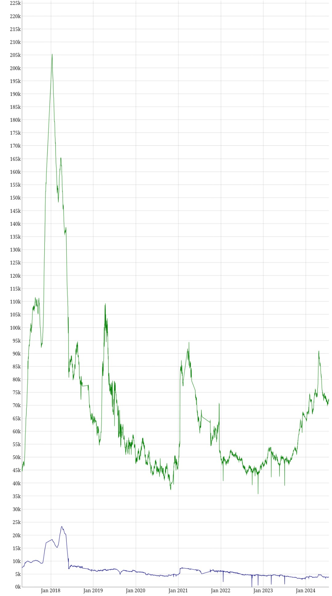 bitnodes.io's tor node count has continued to drop (down about 1k today, 10k in last 90 days).