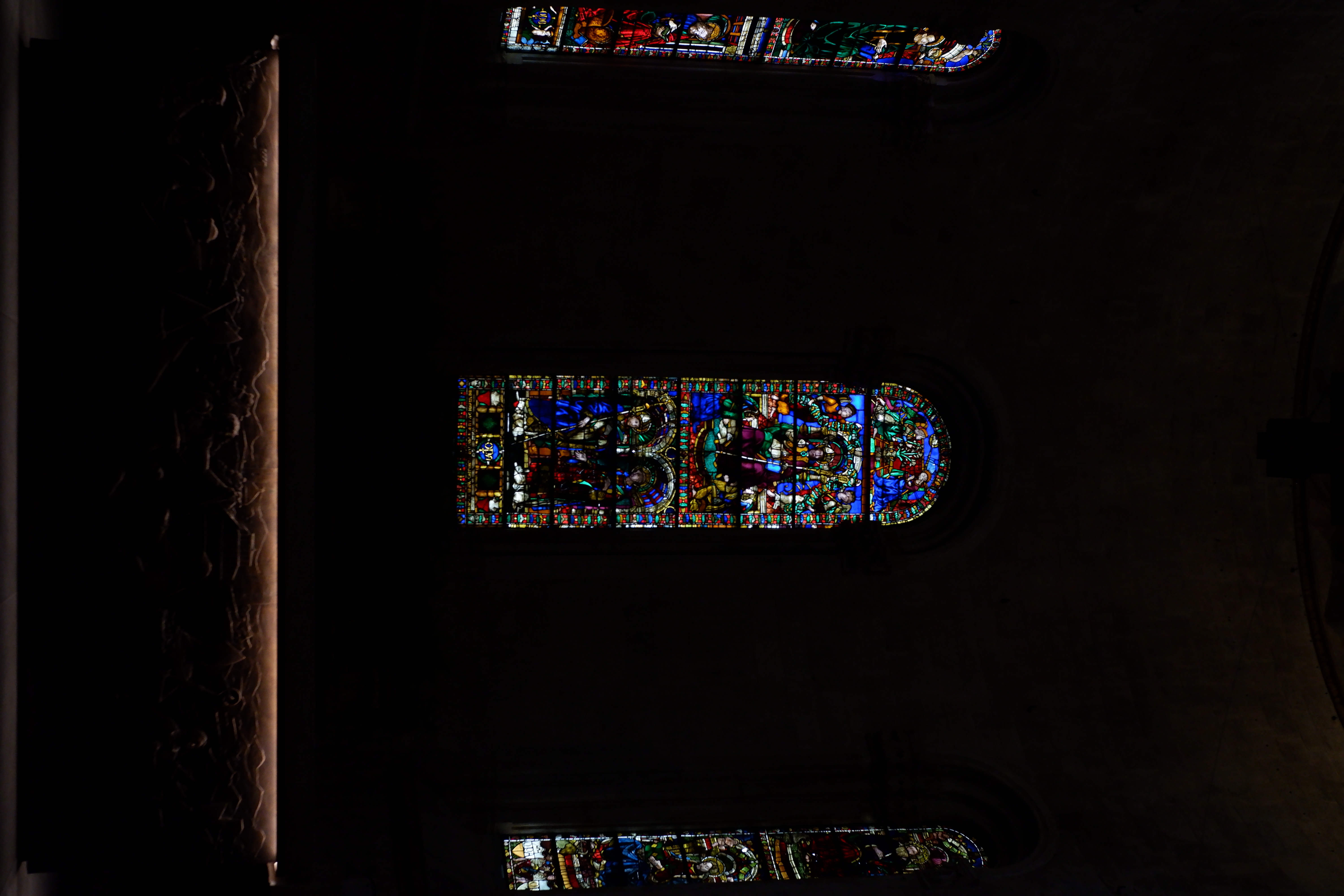 Here, the main altar is slightly illuminated by the windows behind, which present beautiful drawings.