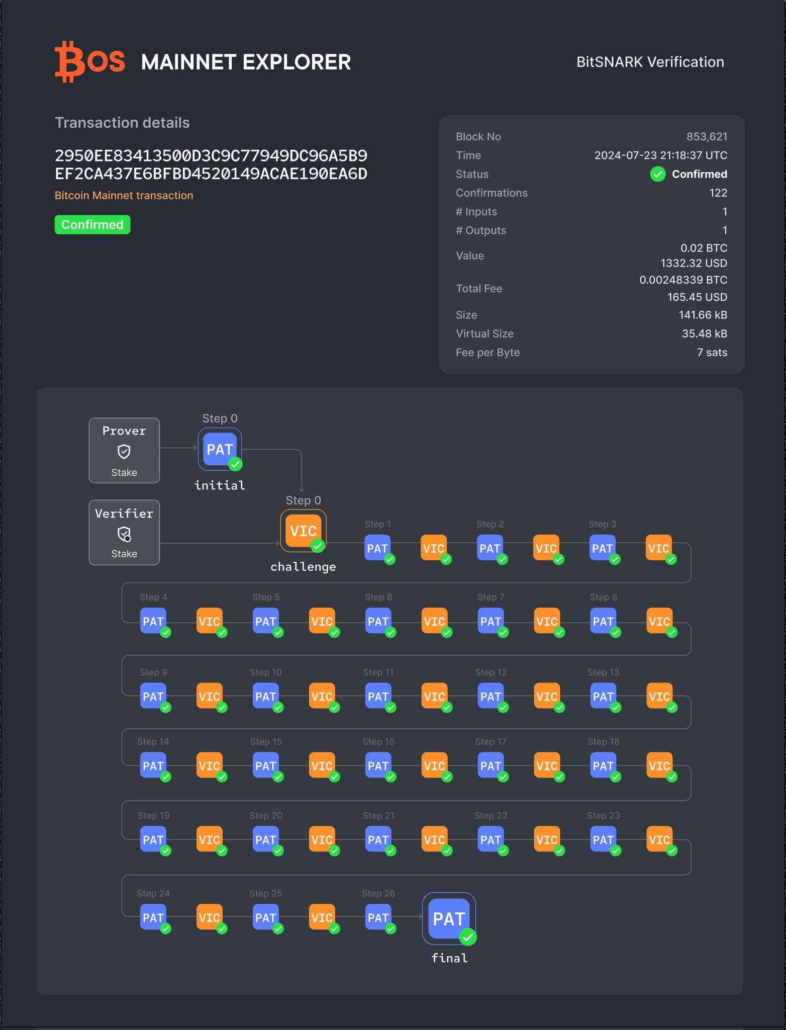 The verification was finally confirmed on block 853626