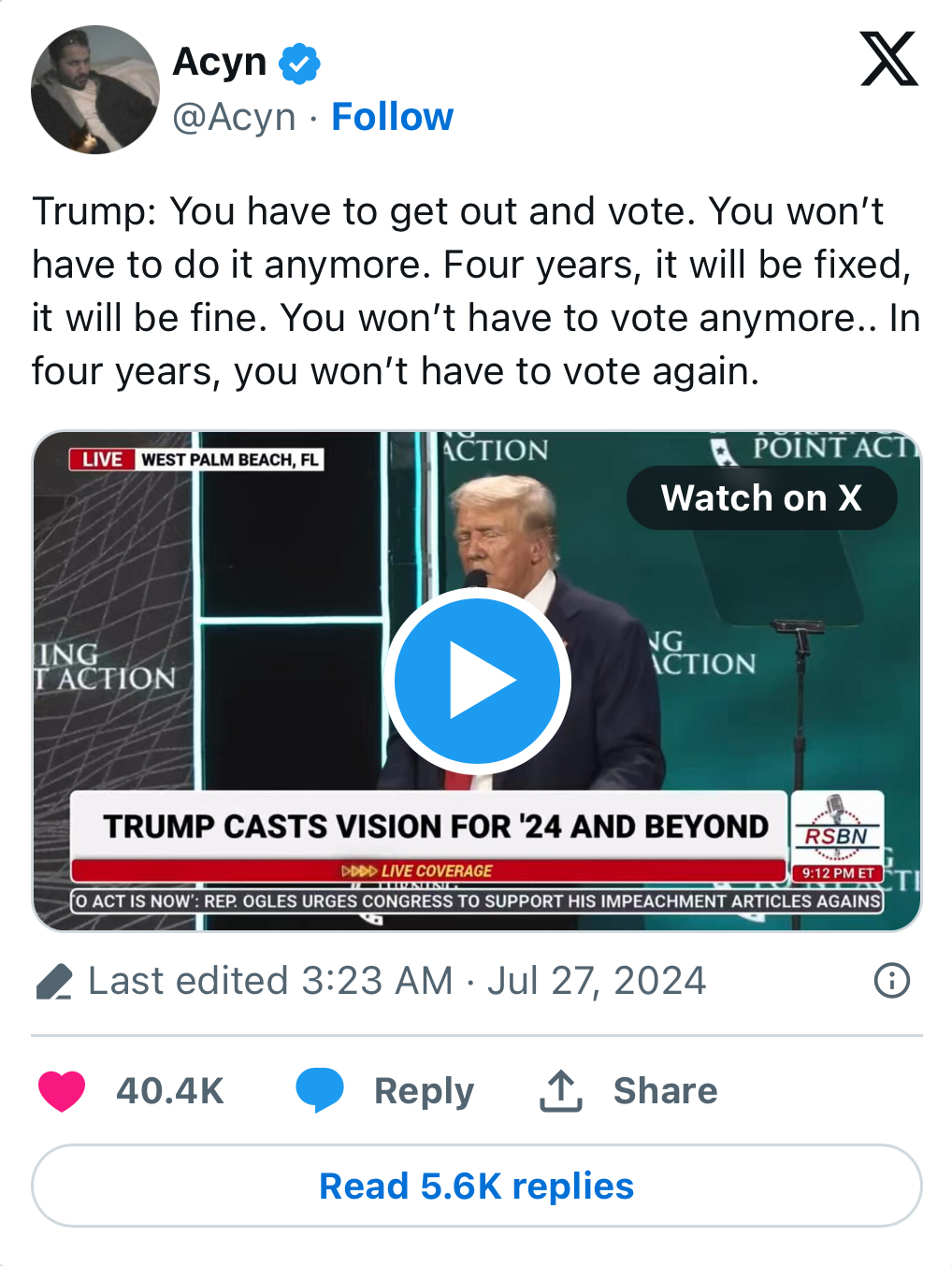 The Freaks are saying things as crazy as him announcing to remove cap gains free ross, The US starts dca'ing 500 bitcoin a day...........looks like theyr'e about to announce him to the conference as a "pleb like us" and award him one bitcoin......