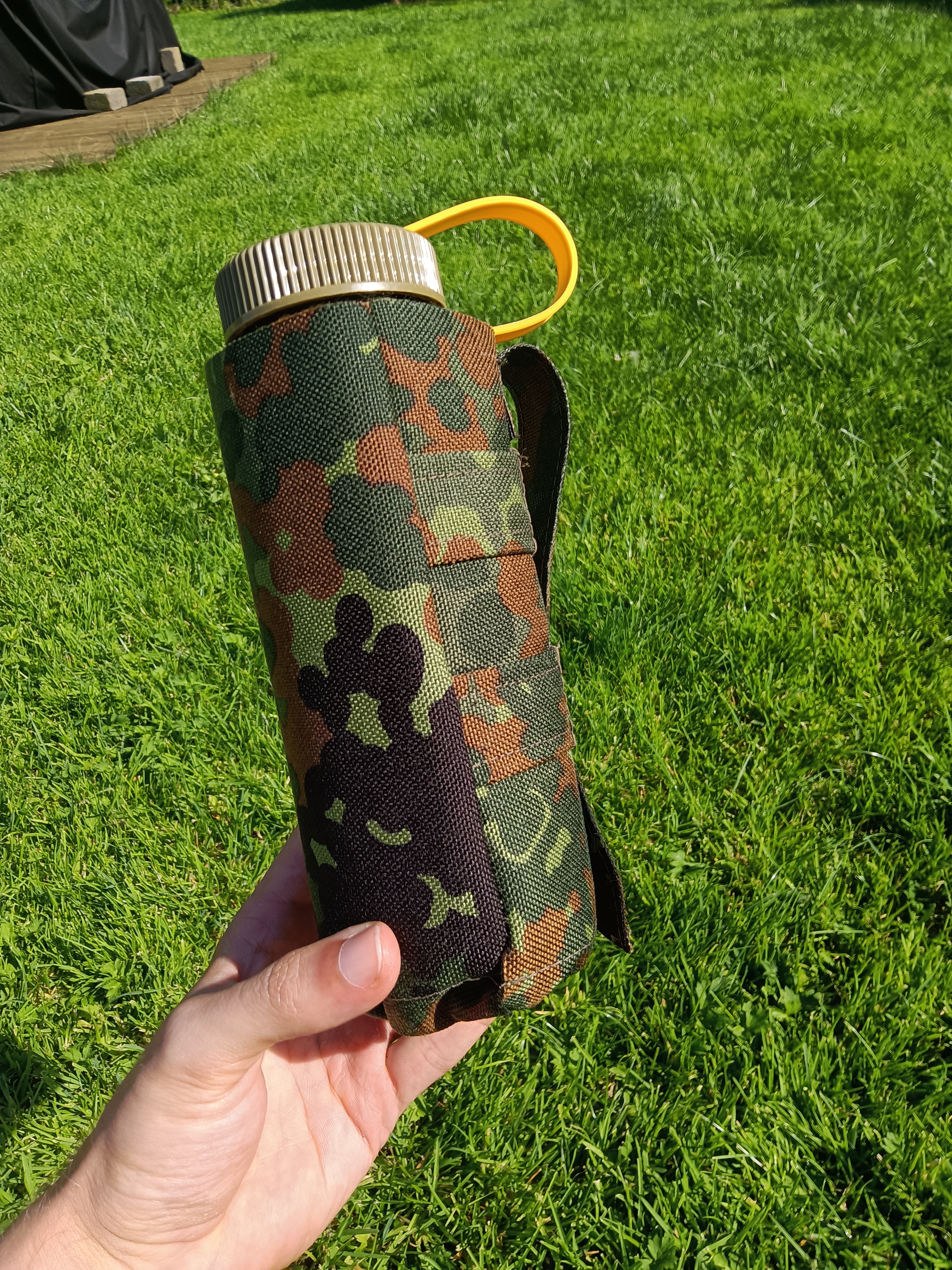 I like that the bottom is folded, so the bottle doesn't fall off easily when walking or running, and I think the seams fit the bottle well.