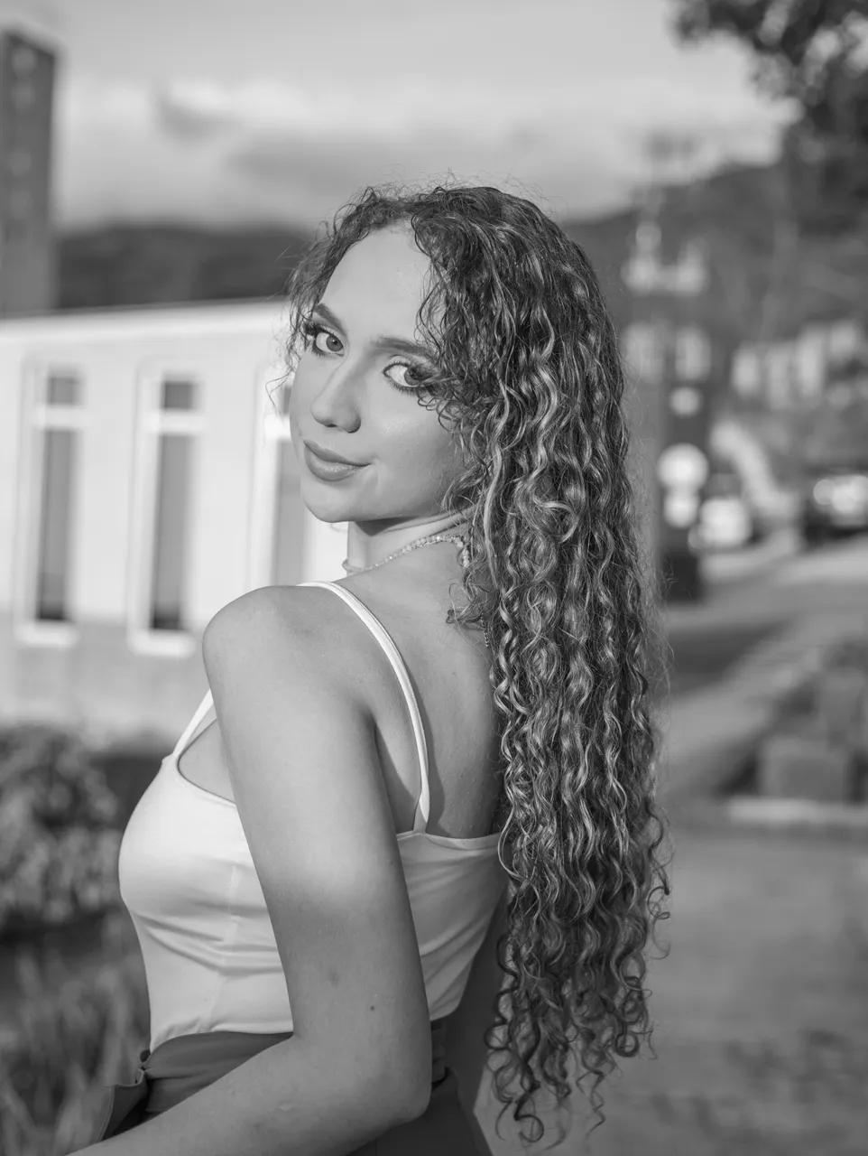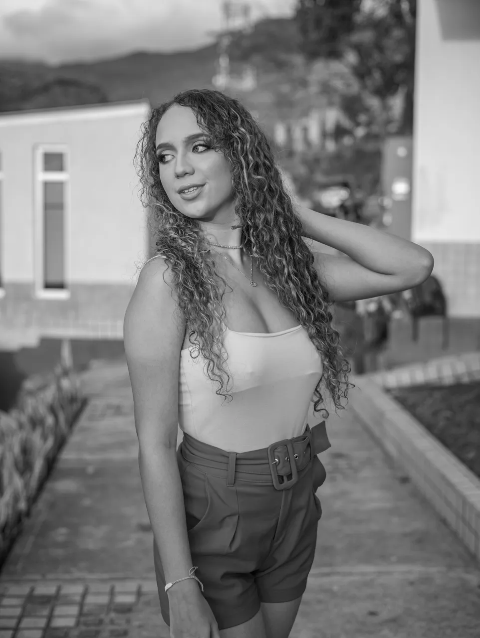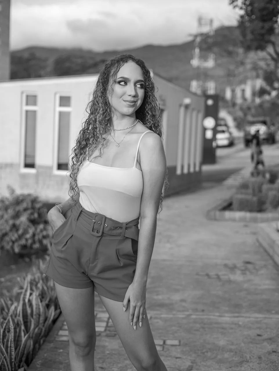 I wanted to share these photos in black and white because I took them at golden hour and there was a very strong golden light that painted the model's skin a yellowish tone that was not very nice, so I noticed that they worked much better in black and white.