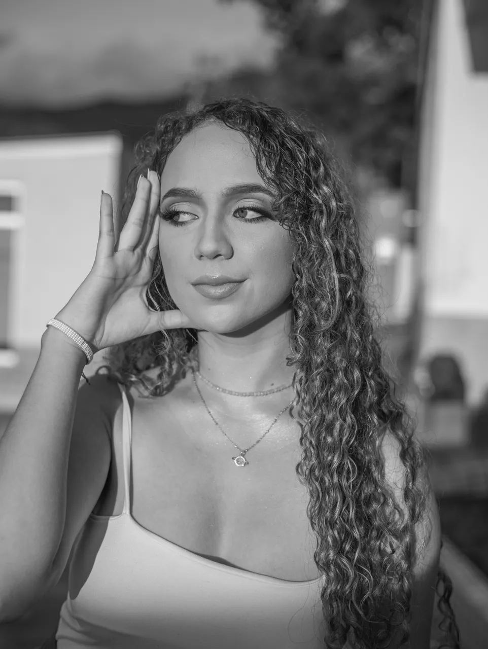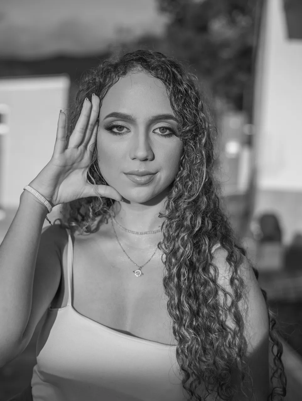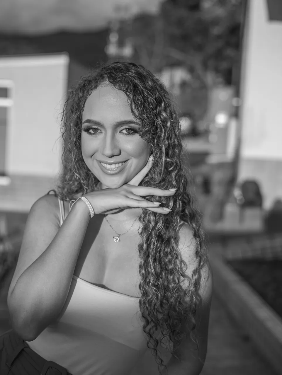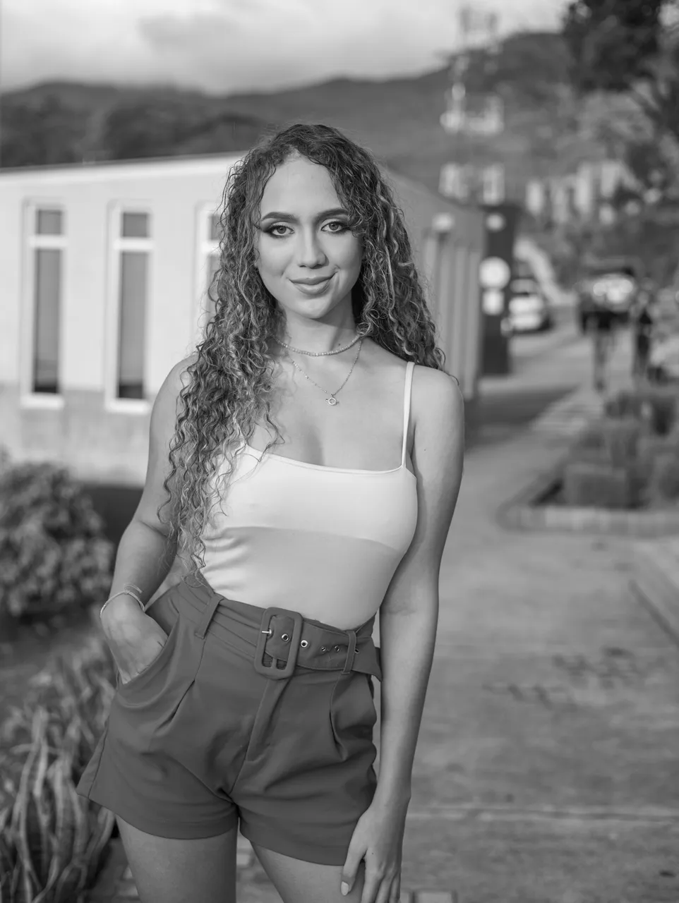 I wanted to share these photos in black and white because I took them at golden hour and there was a very strong golden light that painted the model's skin a yellowish tone that was not very nice, so I noticed that they worked much better in black and white.