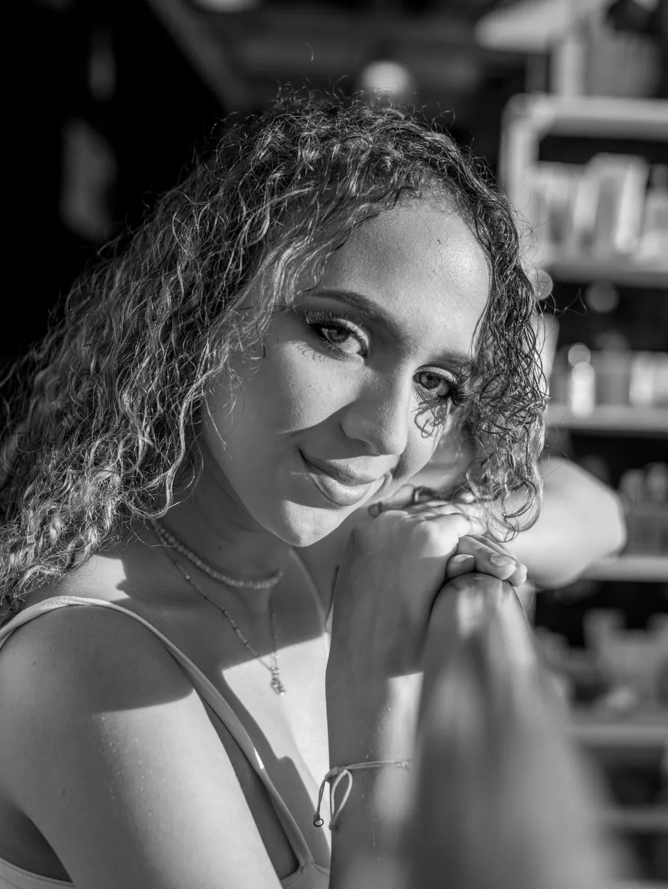 I love the sparkle in her eyes and how you highlighted her charms with that black and white contrast.