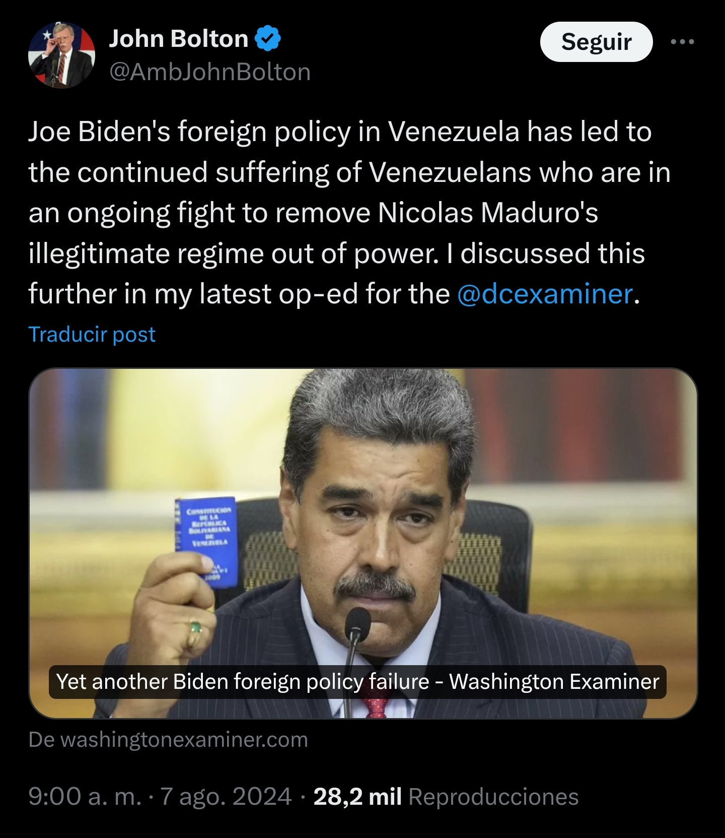 Yes, saying it that way seems like a good argument, but unlike Venezuela, the United States has freedom of expression, they don't block social networks and chat channels, they haven't censored TV shows, they haven't closed TV channels, they haven't expropriated newspapers, the country hasn't lost 20% of the population to mass emigration, on the contrary, it is the immigrants who continue wanting to invade the United States for the thousand opportunities and benefits it offers. The United States is not at its best like a few decades ago, but it is never and never at the same level as Venezuela, so in that sense Maduro's criteria is nullified. In addition to the fact that Maduro's fraud is too obvious, the results are on the web in a PUBLIC manner, so that anyone from any country can see them, but the only one who denies the legitimate result is him and his regime, not to mention the oppression and kidnapping of citizens. In the United States, you can stand in the middle of any street with a sign saying that you are against Biden and no police or national guard will come to take your life. Maduro does not know where to seek shelter and can no longer find arguments that could be valid. I really liked that you showed me that article, I had not seen it, if you find others do not hesitate to comment. Thanks