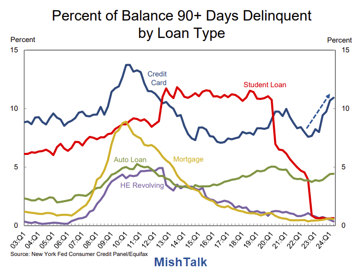 life plays out like this. this is why the data on the charts help us understand how the economy is doing in some ways. if everyone is paying off their loans, then the economy is doing well. if they are not, then we're seeing some pain points that can point out trouble.