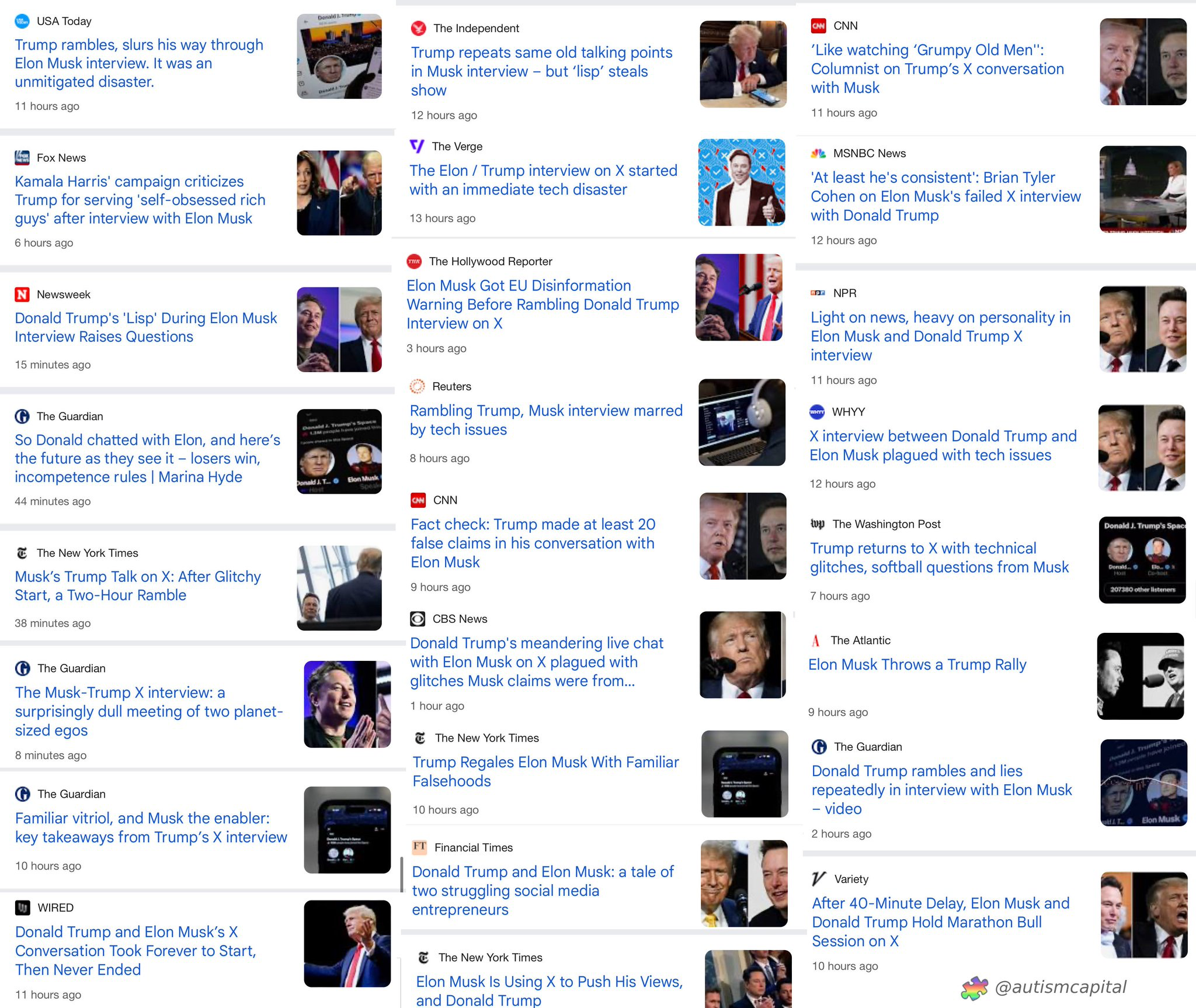 Musk added that X had tested the system “with 8 million concurrent listeners earlier today.” Assuming that Musk is telling the truth that his system could handle 8 million listeners, it’s entirely plausible that more than 8 million people might try to listen to Trump and Musk spout their inane, racist bullshit. The world has 8 billion people, and Twitter reportedly has about 500 million users worldwide.