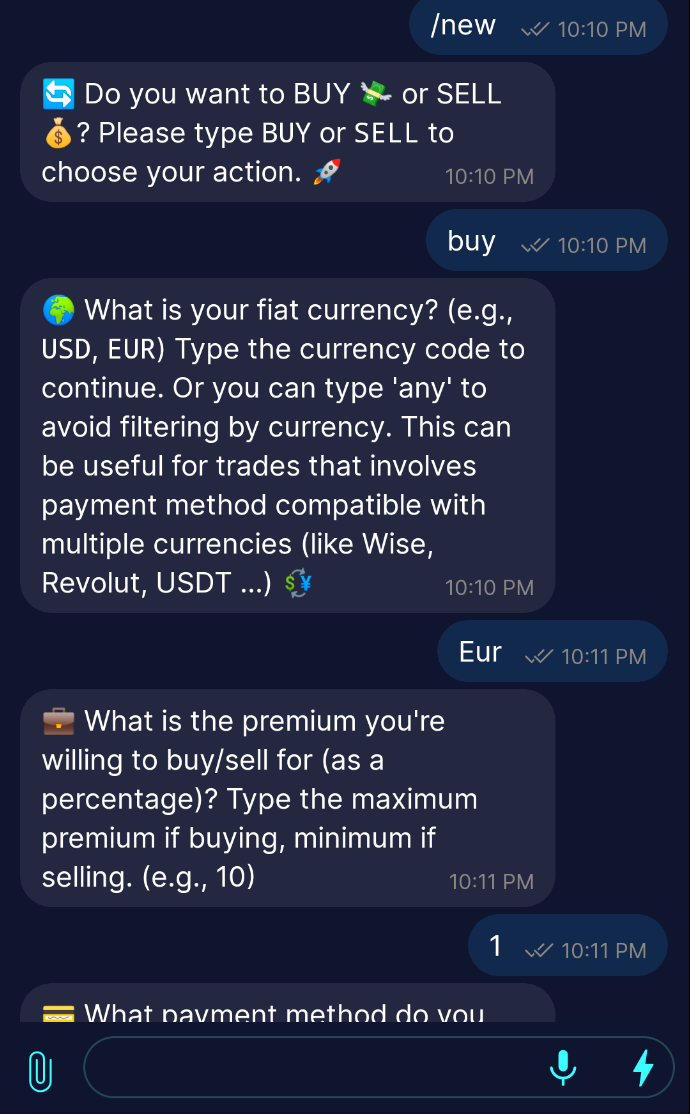 I'm excited to introduce a new tool for those using RoboSats—a SimpleX bot that notifies you when an order meeting your specific criteria (currency, premium, payment method, and amount) is posted. This project is designed to uphold the privacy philosophy of RoboSats by leveraging the security features of SimpleX.