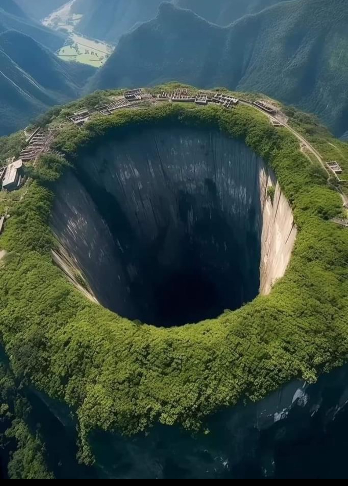The largest and deepest sinkhole in the world is Xiaozhai Tiankeng, in Fengjie, China. Its name means something like "well of heaven".