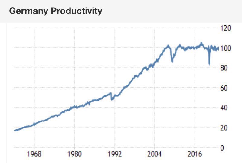 The standstill of the engine of the European economy after the GFC, Germany, is still one of the most interesting and meaningful graphs in contemporary economic history. This is truly a remarkable achievement given the technological progress of the last two decades, an ideologically driven policy that has gotten completely out of hand.