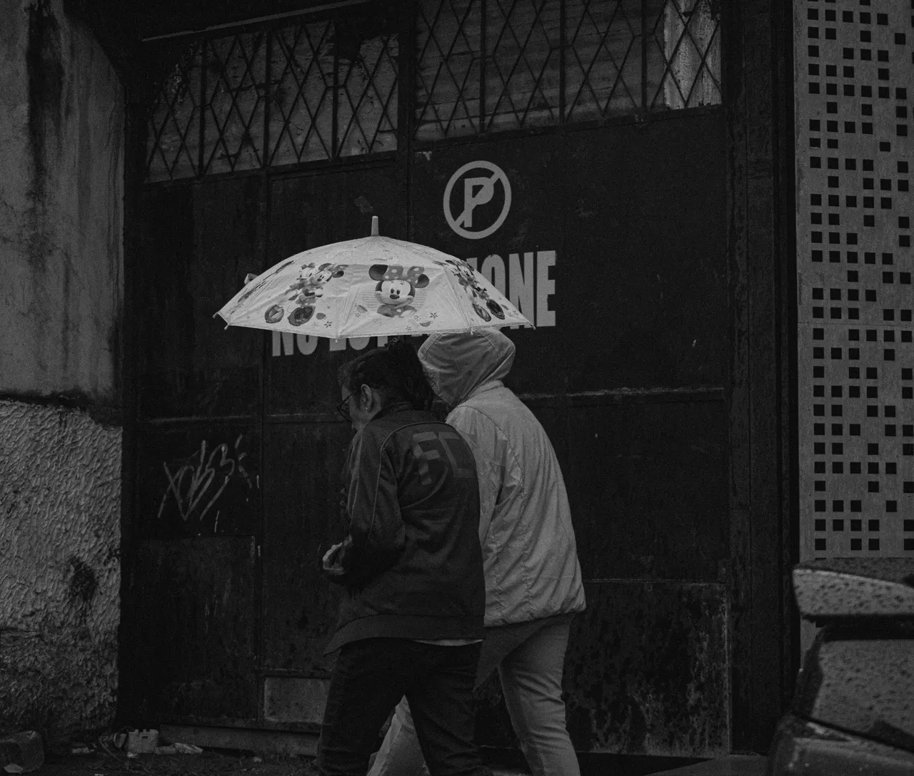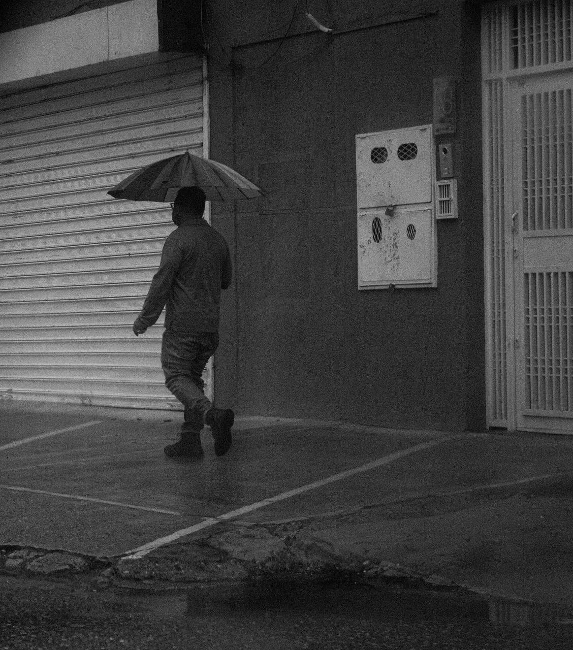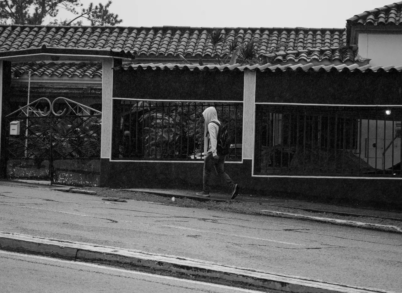 Since I don't have an umbrella, when I go out on the street I'm more like this boy, just a hoodie covering my head and that's it.