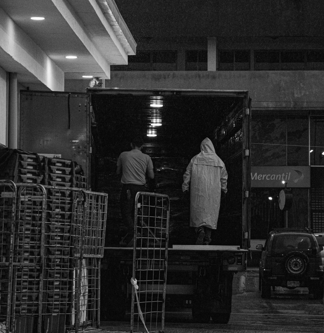On the way I saw a couple of very interesting photographs, I like the following photo very much because of the way the fully covered person is entering the very dark truck, it looks like a movie.