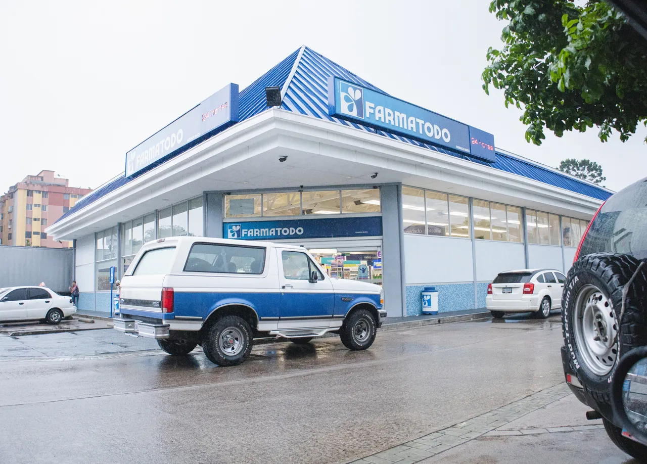 I took the following photo outside a pharmacy in my city, what caught my attention about this scene was all the shadows of blue that can be seen in the photo, the car combined a lot with the pharmacy.