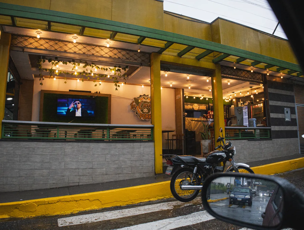 Then, when I sat down to edit it, I really liked seeing the contrast between the yellow of the store lights and the blue/gray that can be seen in the car's rearview mirror, as if it were two different worlds.