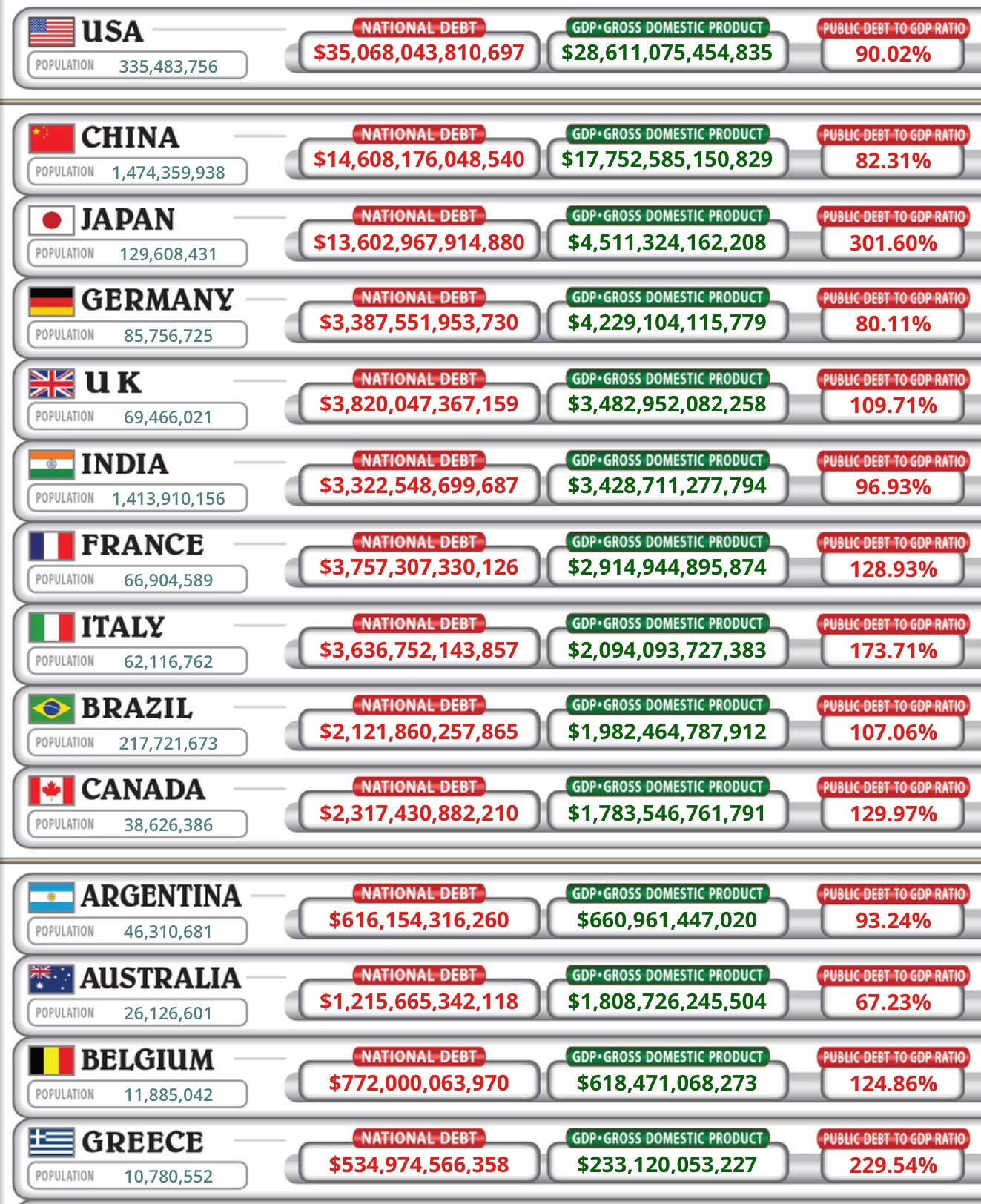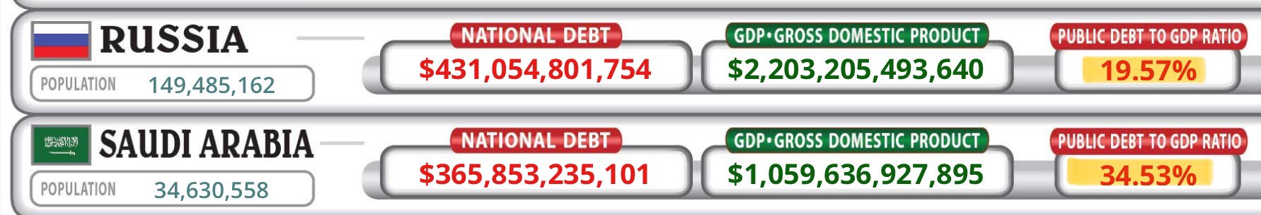 A small side note: it is interesting that it is Russia of all countries that has a national debt under control. It is still a mystery to me how the Europeans in particular could presume to intervene in a war that a) they could not afford and b) was already lost from day one for various reasons, if you look at energy availability.