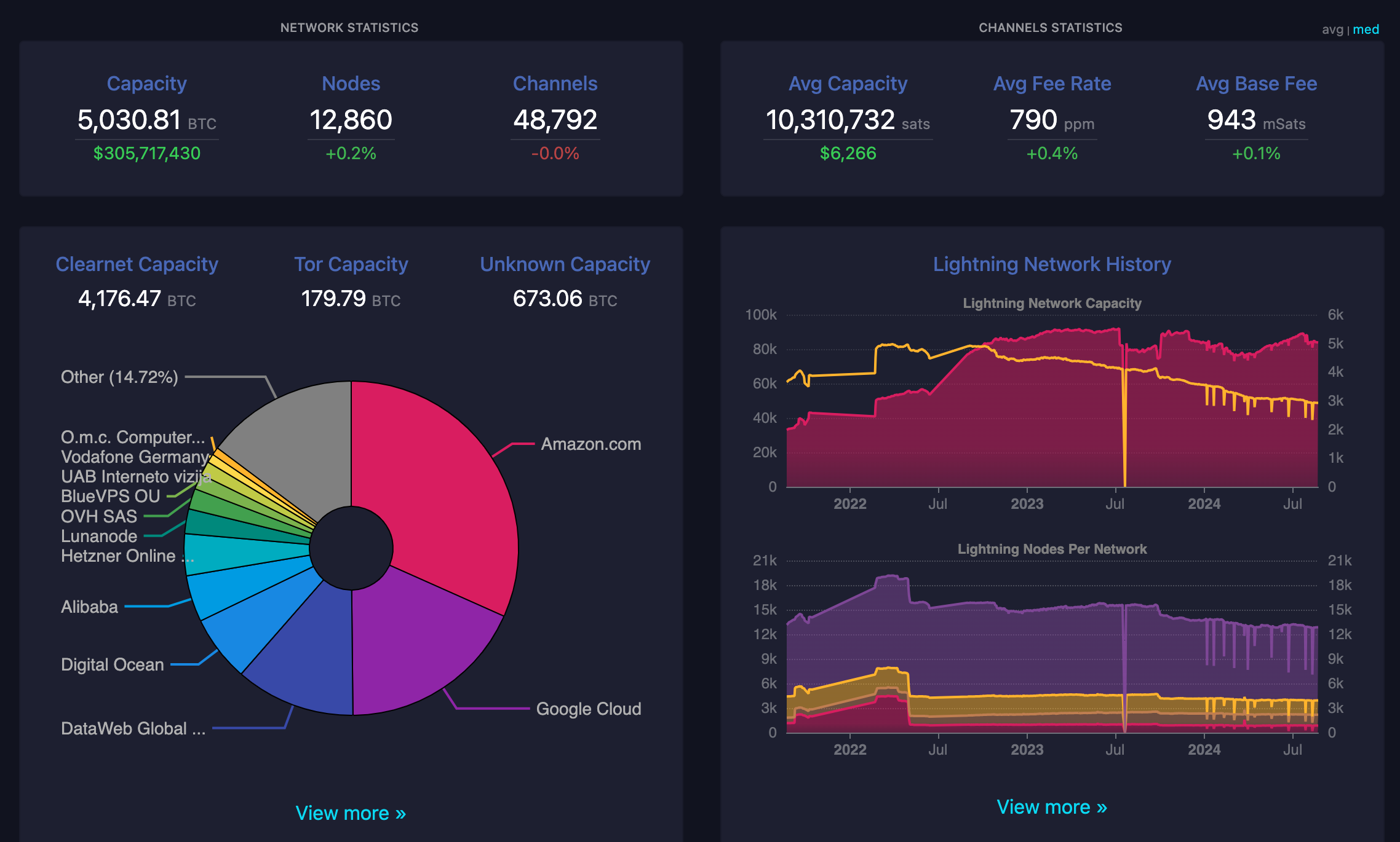There is also a dashboard for the Lightning Network with info about nodes and channels.