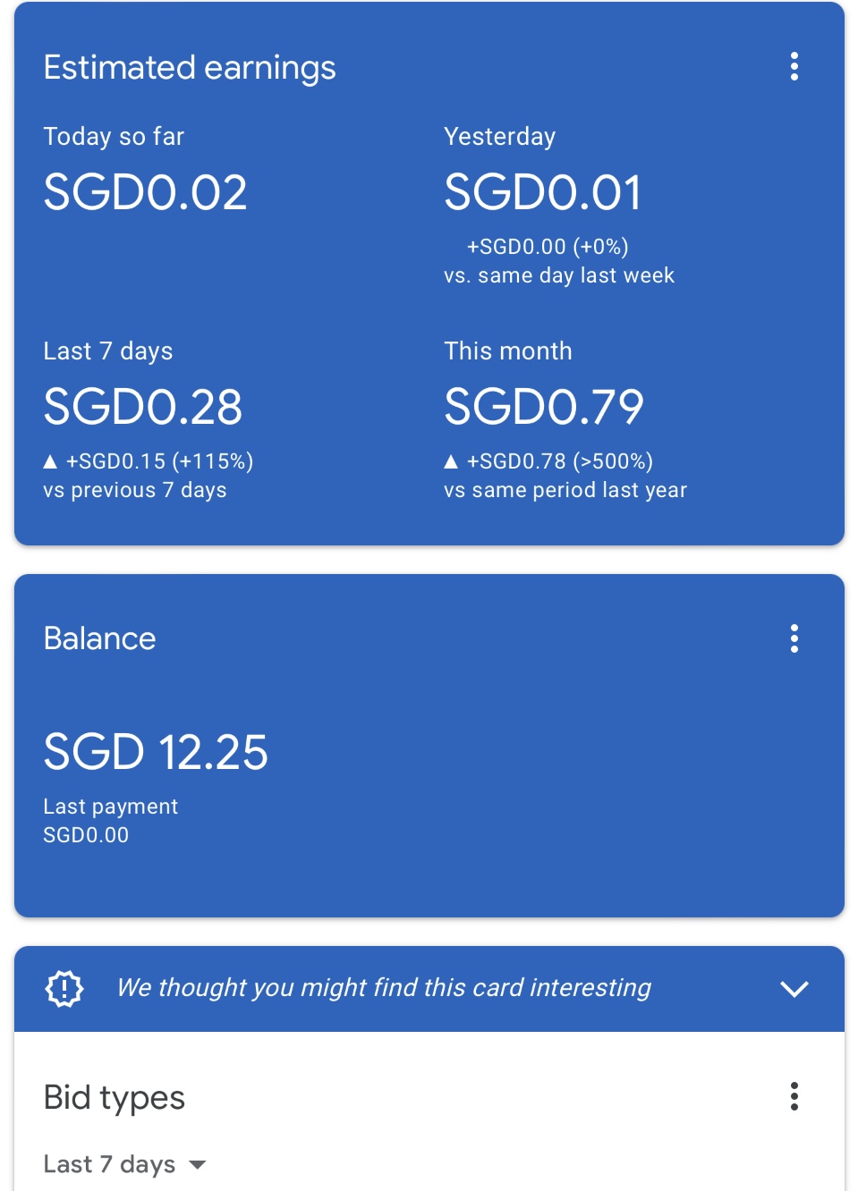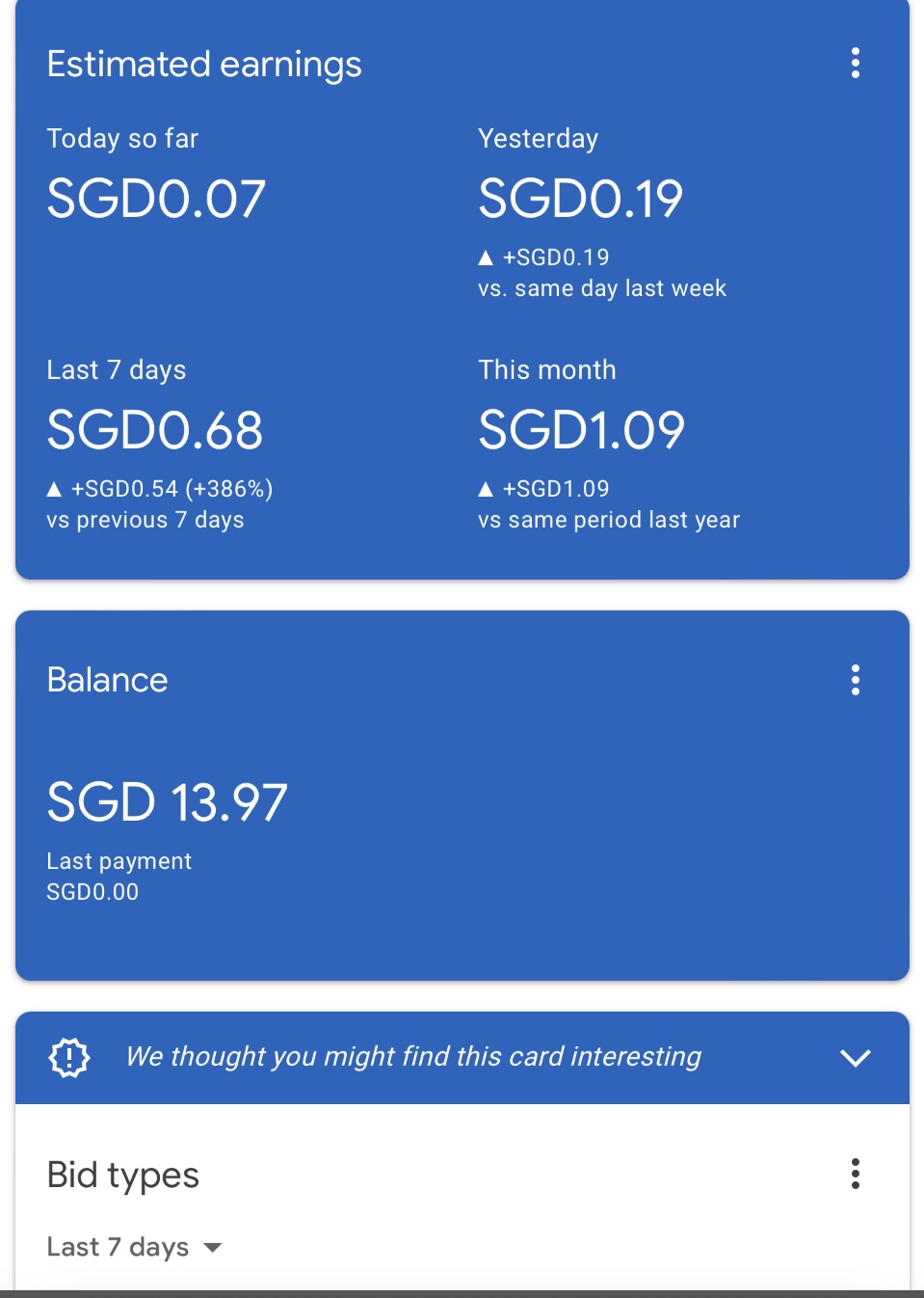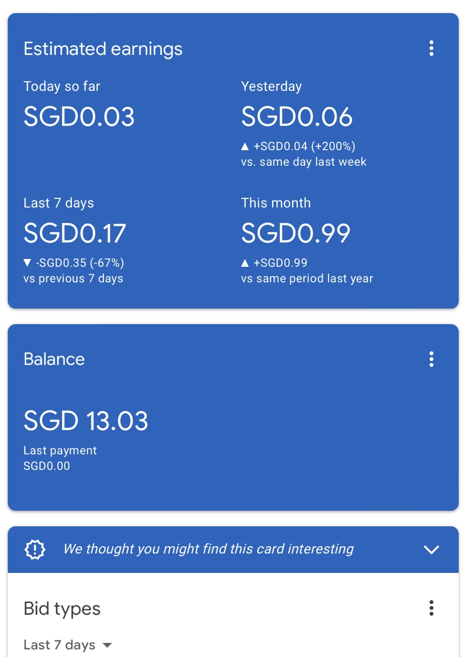 What are you gonna do with AdSense Money? 1.09 SGD in a month! Your this post has much more than this amount.