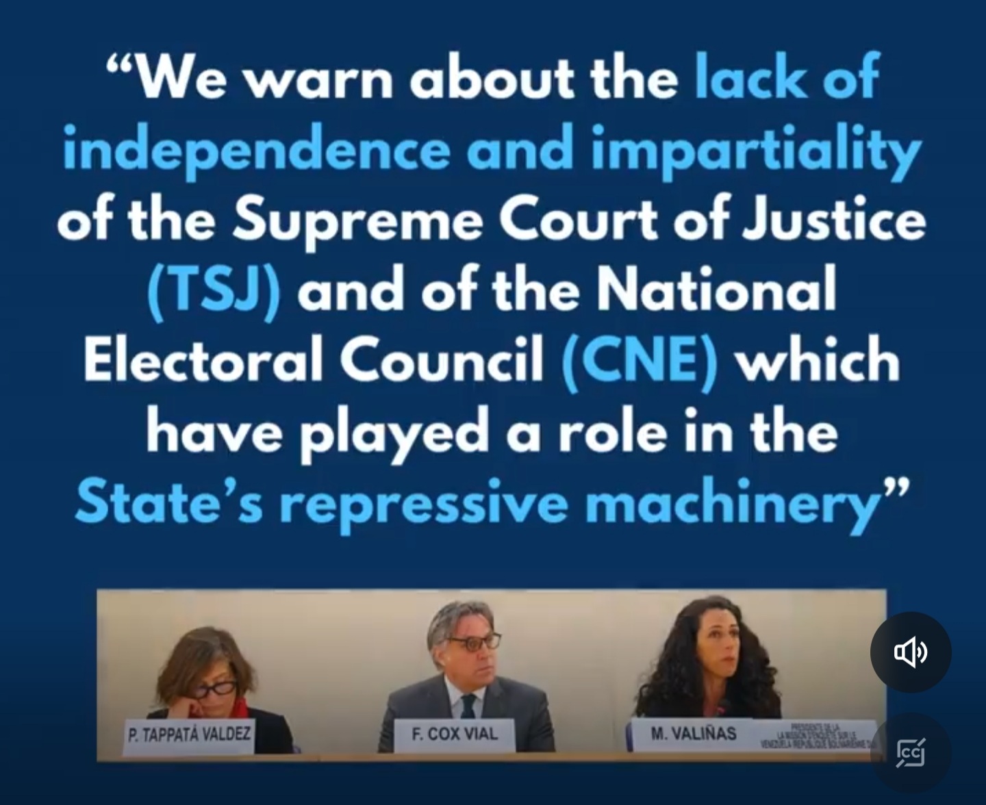 These facts must be incorporated to guarantee justice for thousands of victims, since in Venezuela there is no independence of powers and the judicial system is part of the repressive body of the State, denounced by the UN Fact-Finding Mission.