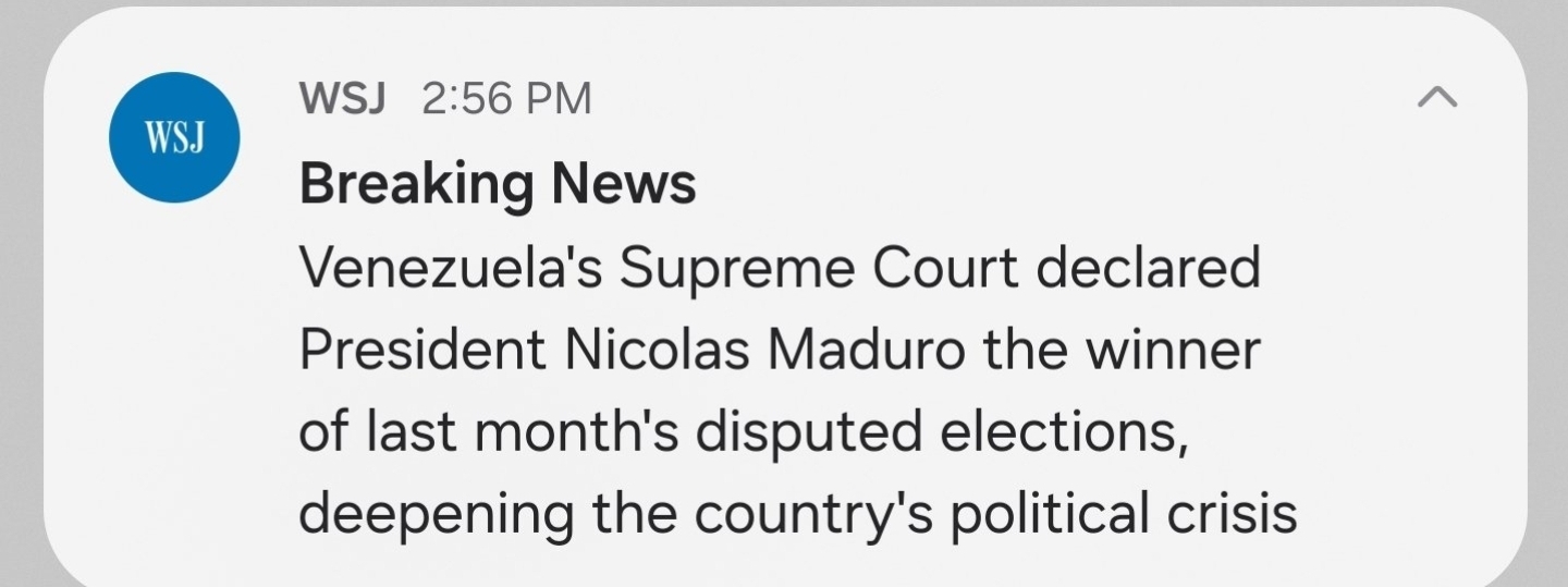 Correction for the WSJ. It's not Venezuelan Supreme Court. It's Maduro's Supreme Court. He manage it and the members are part of the PSUV. His political party