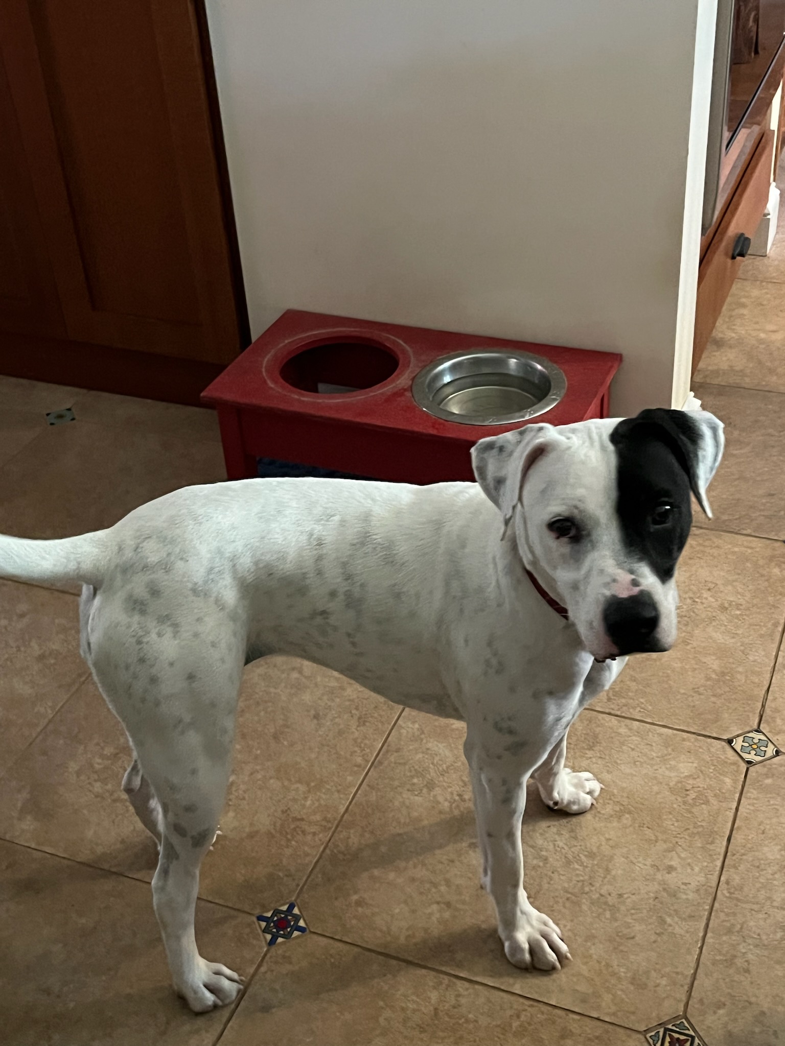 We are very fortunate to have found this good natured beast. Although she had never worn a leash or collar until 3 days ago, she is now strolling the neighborhood like an old pro.