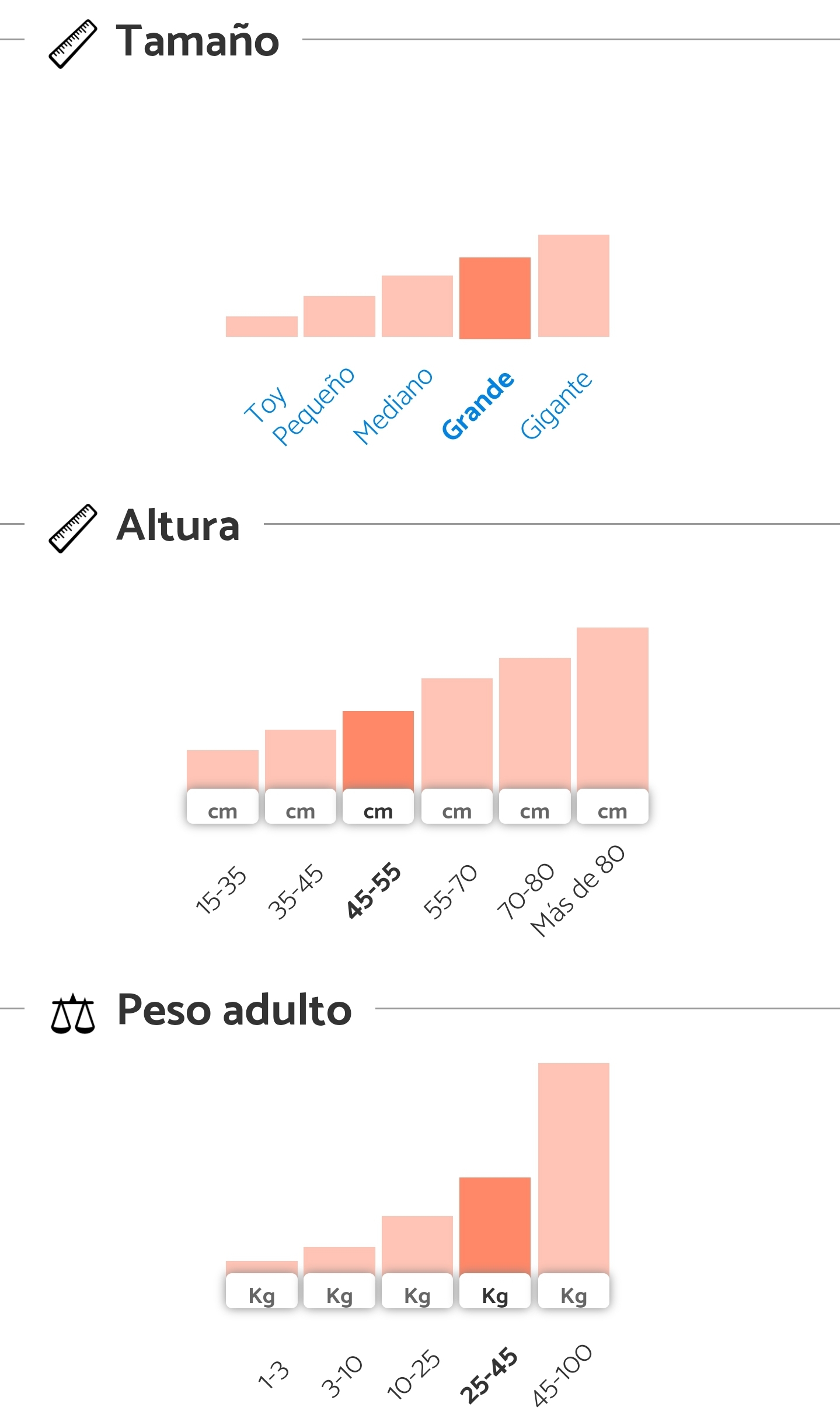 The Mucuchíes dog is large, with a height at the withers of between 55 and 71 centimetres and a weight of between 33 and 50 kilograms in male specimens and between 30 and 37 in females.