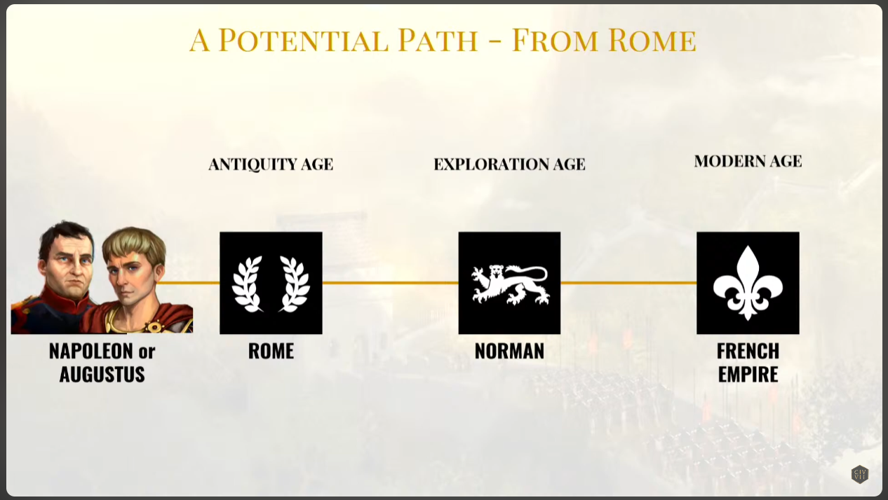 Bridging the gap between the ages of antiquity, exploration and modern. AI will unlock the potential of other civilizations. These civilizations are contingent upon the chosen civilization from the antiquity era. For instance, you could start with Rome and progress to the Mongols if you have a surplus of horses.