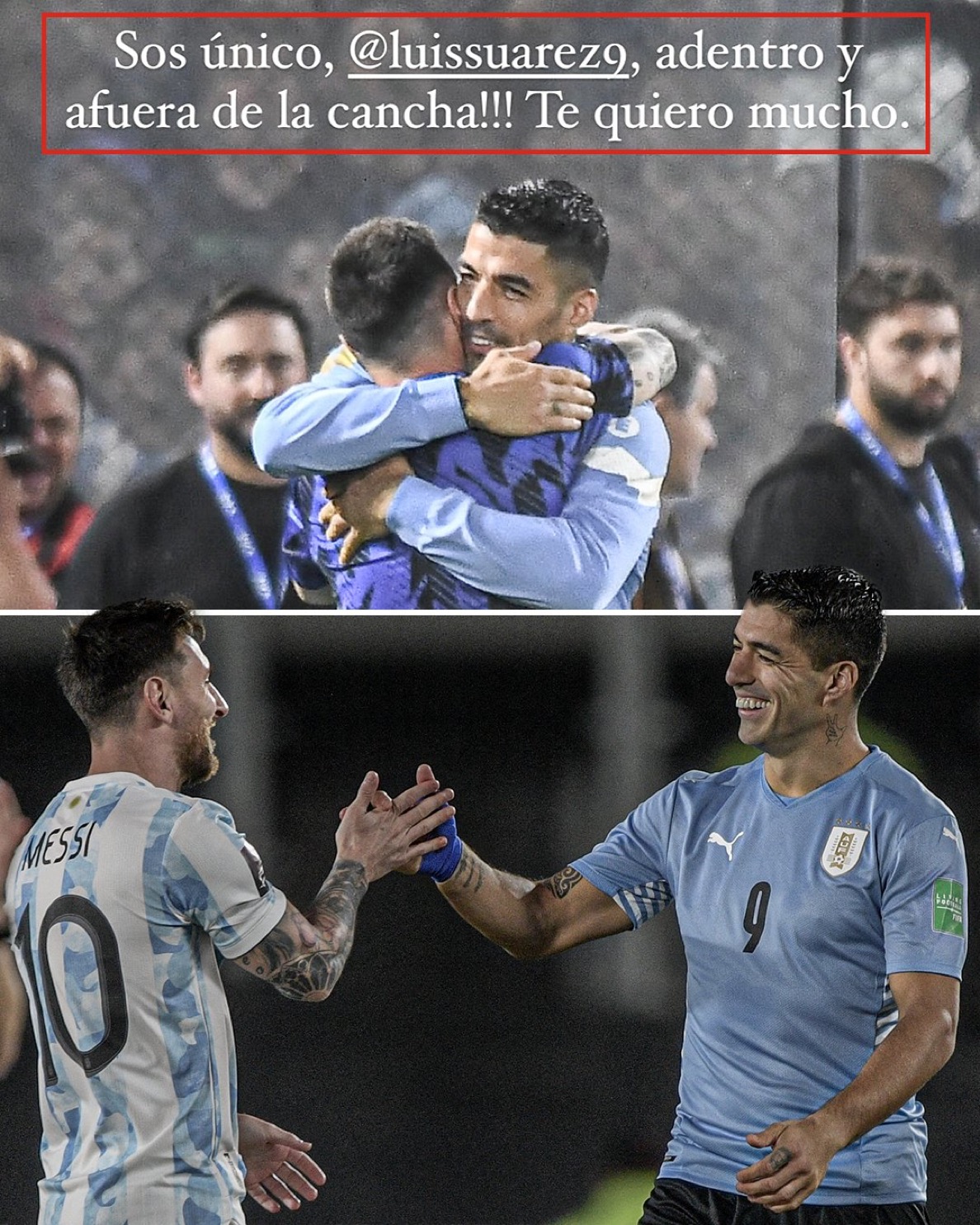 You're unique, on and off the pitch!!! I love you very much." - Lionel Messi's message to Luis Suárez following his retirement from international football 💙